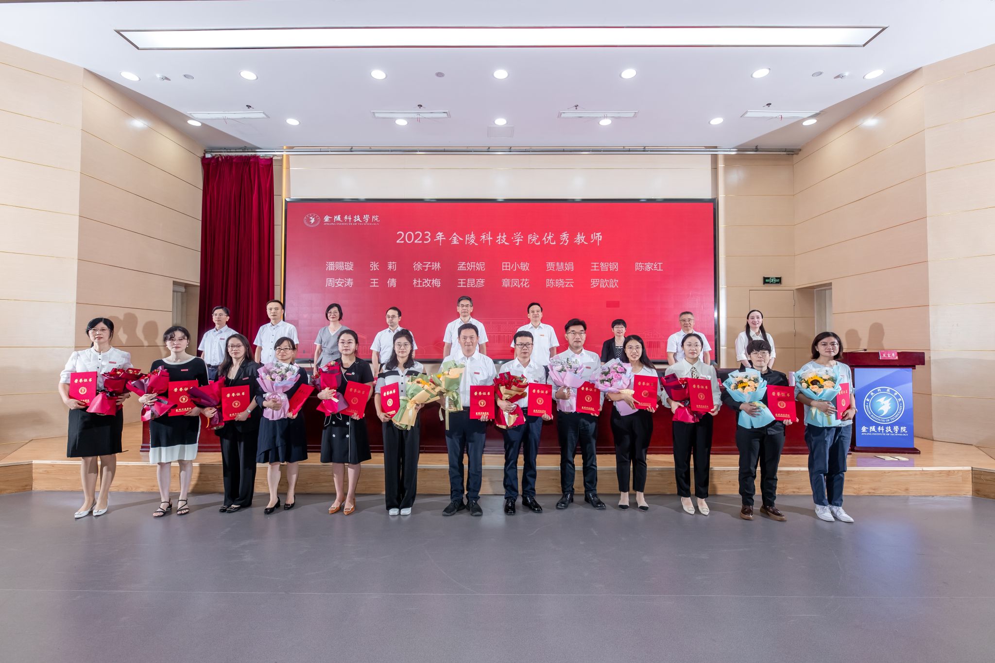 校领导与2023年省先进个人和集体奖项获奖教师代表合影