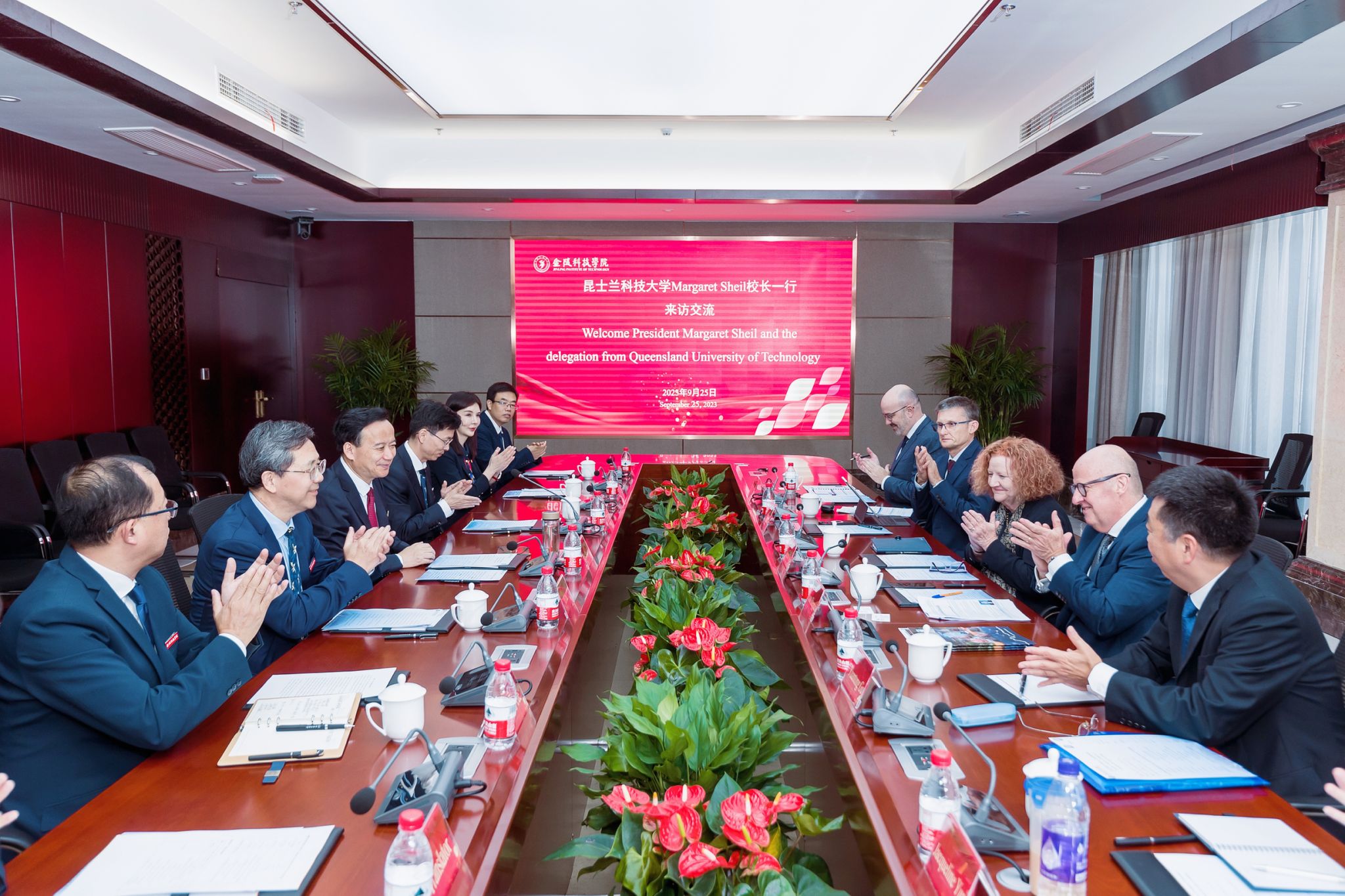 9月25日下午,昆士兰科技大学校长Margaret Sheil、副校长Scott Sheppard一行访问球王会。校长刘永彪会见了代表团一行,国际合作与交流处、商学院、软件工程学院、国际教育学院等部门、学院负责人参加活动。副校长叶智锐主持合作交流会。