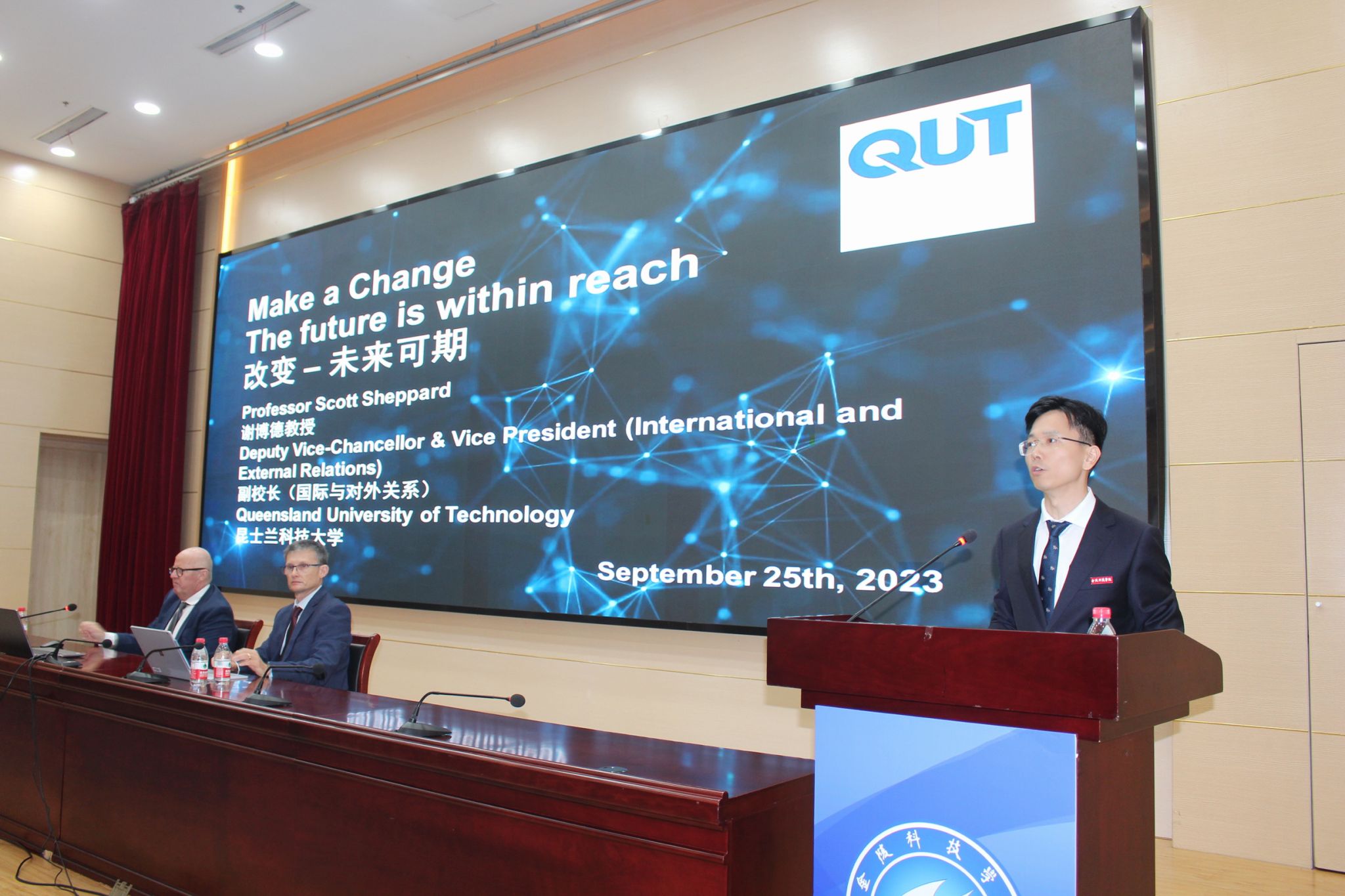 来访期间,Margaret Sheil一行参观了金科创客汇。Scott Sheppard为球王会学生作了题为《改变——未来可期》的讲座。