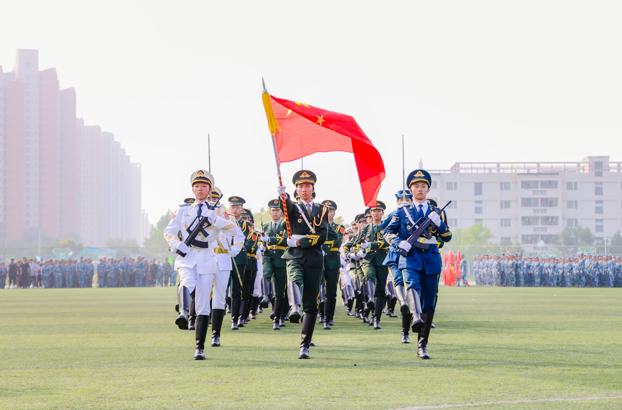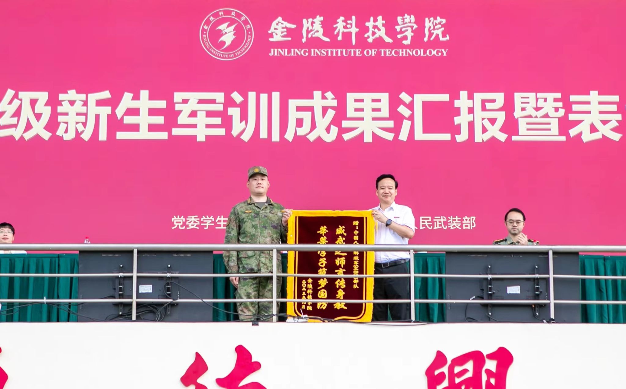 9月27日,球王会2023级本科新生军训成果汇报暨表彰大会在江宁校区北运动场举行。校党委书记刘志远、校长刘永彪、党委副书记单晓峰、副校长张燕、副校长倪杰、副校长高永祥、纪委书记王延光、副校长顾晓燕、副校长叶智锐,承训部队首长,相关职能部门负责人、各二级学院党政负责人、新生辅导员和班主任、2023级全体军训团成员参加大会。单晓峰主持大会。