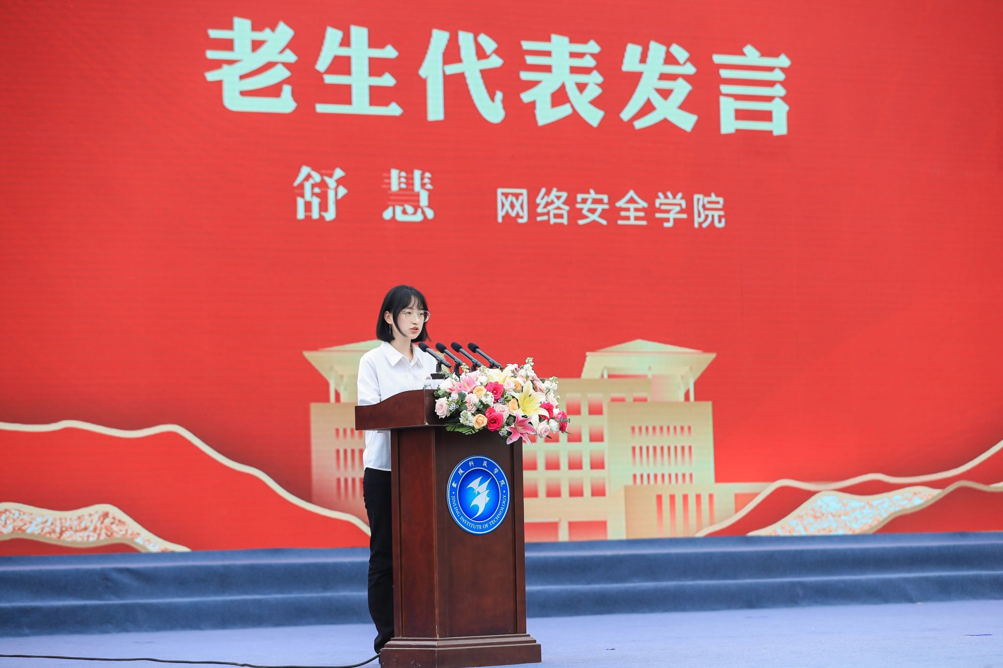 开学典礼上,教师代表杨昀、优秀校友代表罗响、在校生代表舒慧同学、新生代表李仁杰同学先后发言,师生们一起观看了军训成果视频。