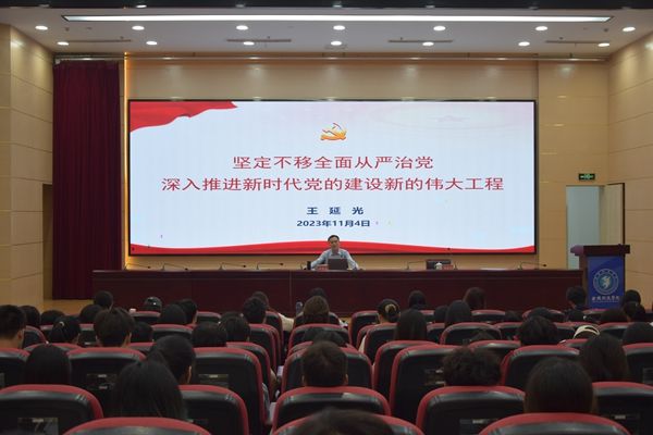 校党委常委、纪委书记王延光为学员作题为《坚定不移从严治党,深入推进党的建设的伟大工程》的辅导报告。他从全面从严治党的基本概念及历史演变、坚持严的基调正风肃纪、坚持一体推进不敢腐不能腐不想腐、做一名合格党员等四个方面进行了生动阐释。他希望学员知敬畏,做到敬畏党、敬畏人民、敬畏法纪;受监督,主动接受群众监督,习惯在聚光灯下工作;常律己,慎独慎微、勤于自省,严格遵守党纪国法;求实情、讲实话、办实事、务实效,敢于正视问题、善于发现问题、尽快解决问题,真正为师生做好服务工作。