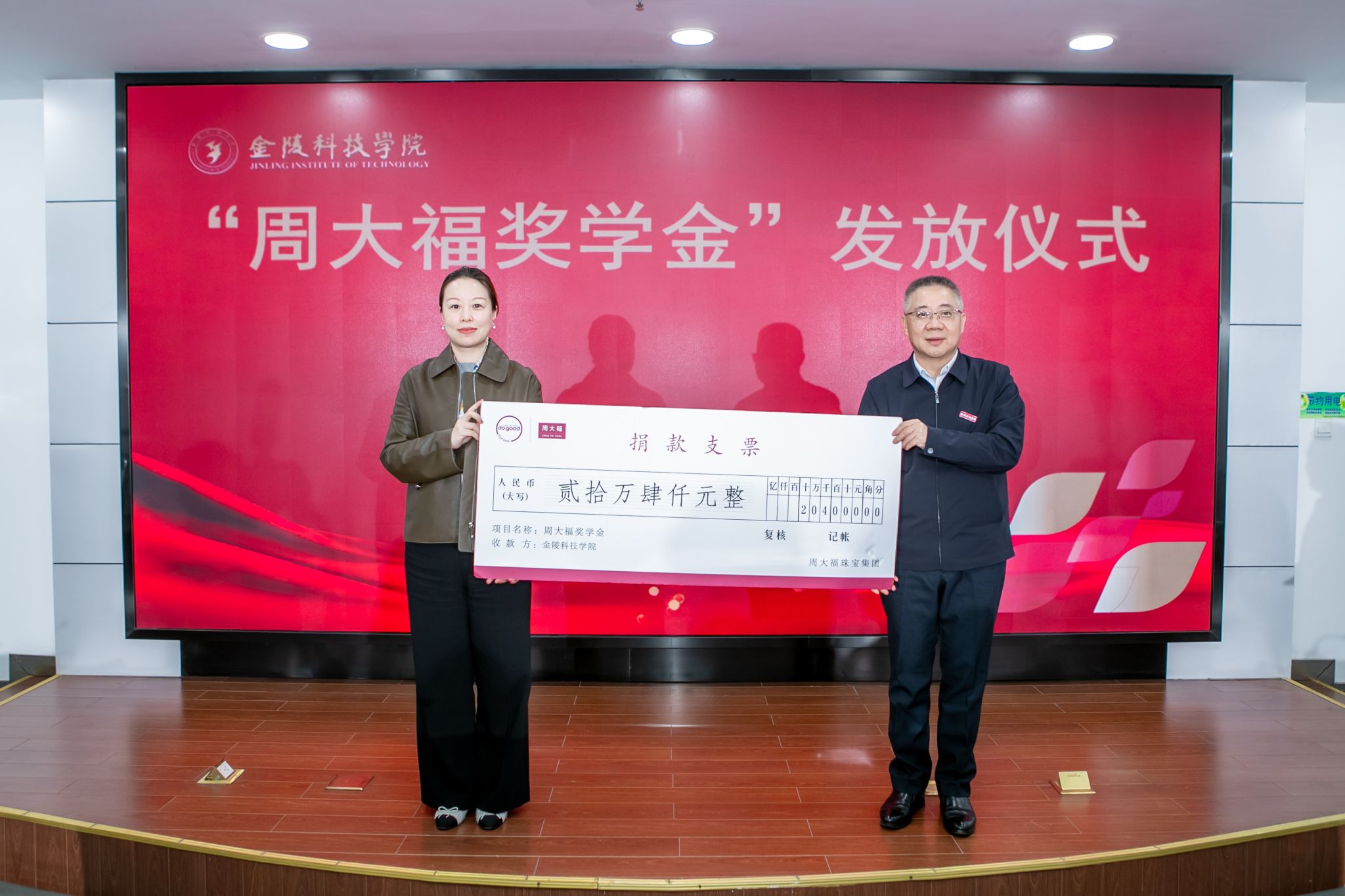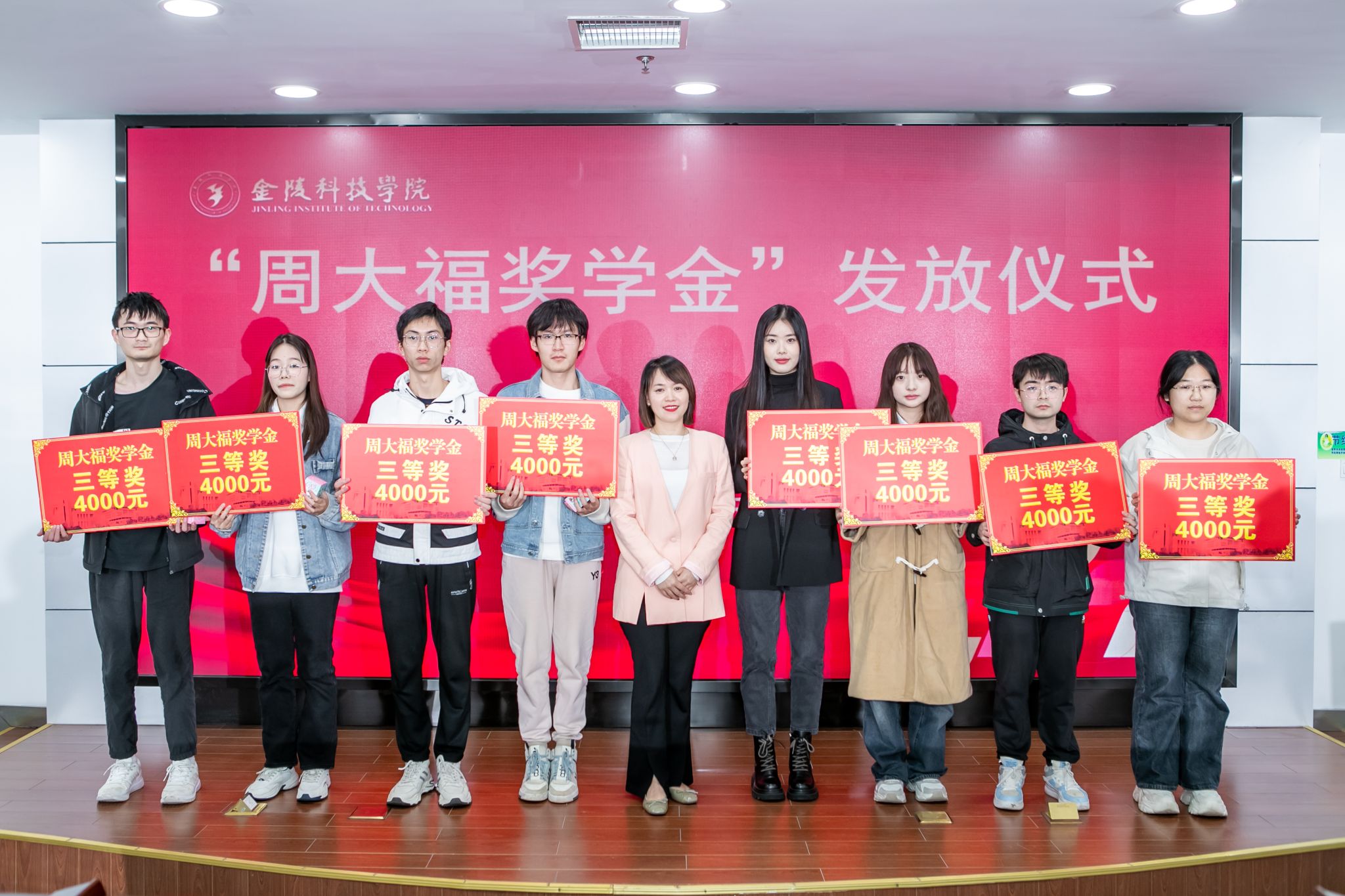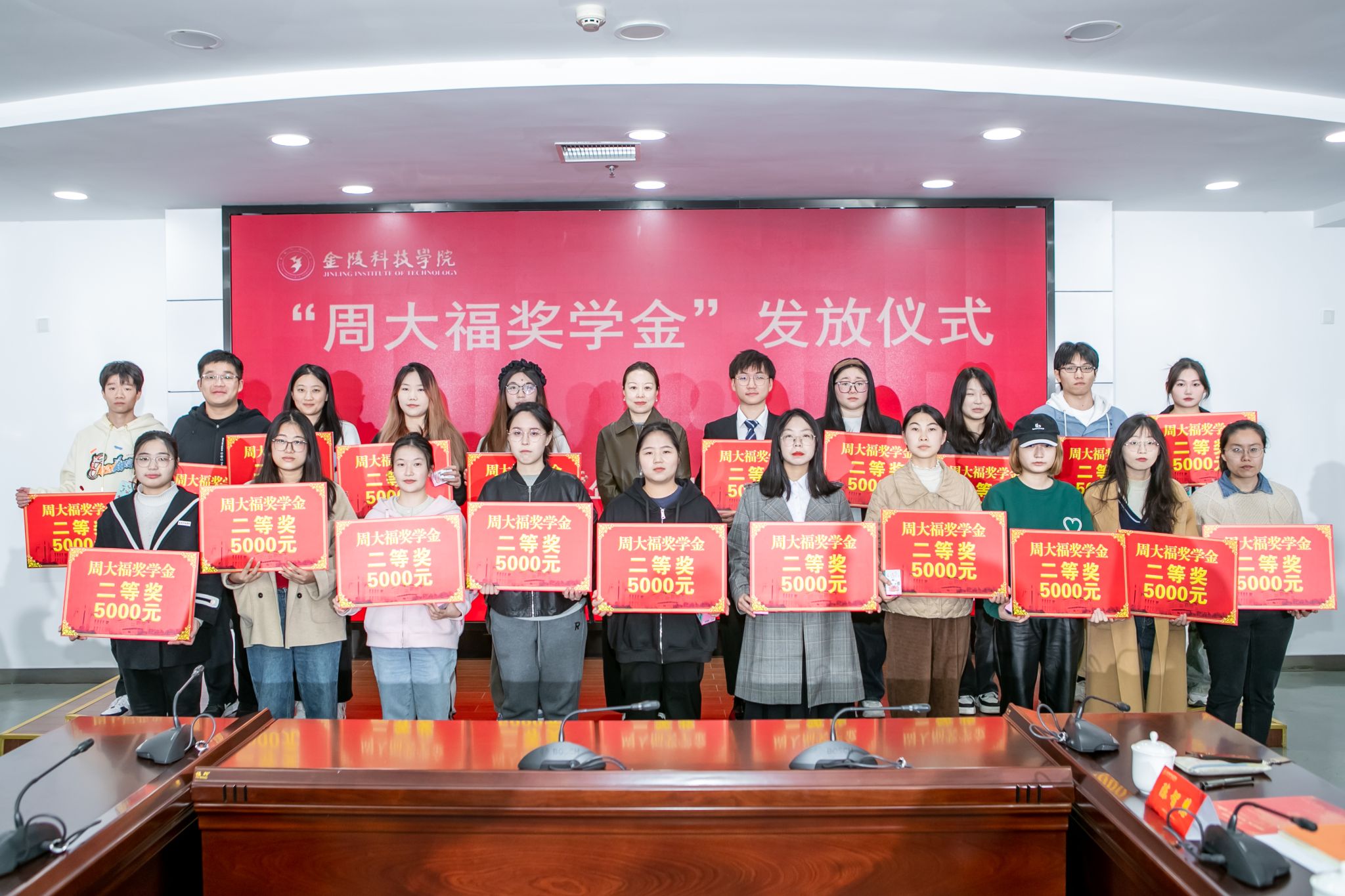 11月10日下午,球王会在江宁校区图书馆第一报告厅举行“周大福奖学金”发放仪式。周大福华东区南京地区业务副总经理孙媛、华东区人力资源部高级经理吴钰桦及相关人员,球王会副校长高永祥,教育发展基金会、校长办公室、学生工作处、商学院、人文学院、材料工程学院相关负责人和专业教师、40名获奖学生参加活动。仪式由教育发展基金会理事长、校长办公室主任庞海燕主持。