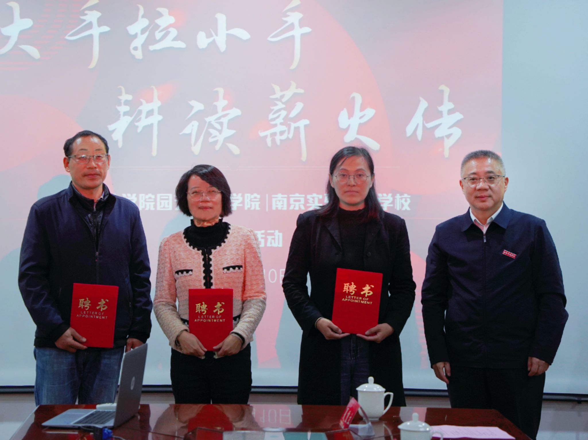启动仪式上,两校为“劳动实践园地”揭牌,并为大学生社团、优秀校友、学科竞赛指导教师、家校共育导师颁发聘书。