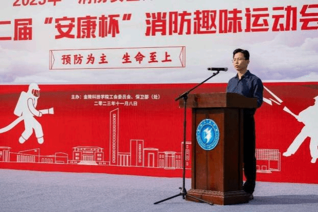 11月8日,在第32个全国消防日来临之际,球王会在江宁校区南区体育场举办了2023年度“消防安全月”活动启动仪式暨第二届“安康杯”教职工消防趣味运动会。南京市科教卫体工会联合会四级调研员王红星、南京市江宁区消防救援大队副大队长钟鹏、参谋吕天杰应邀参加活动,副校长叶智锐出席活动并讲话,保卫处处长骆德军主持启动仪式。