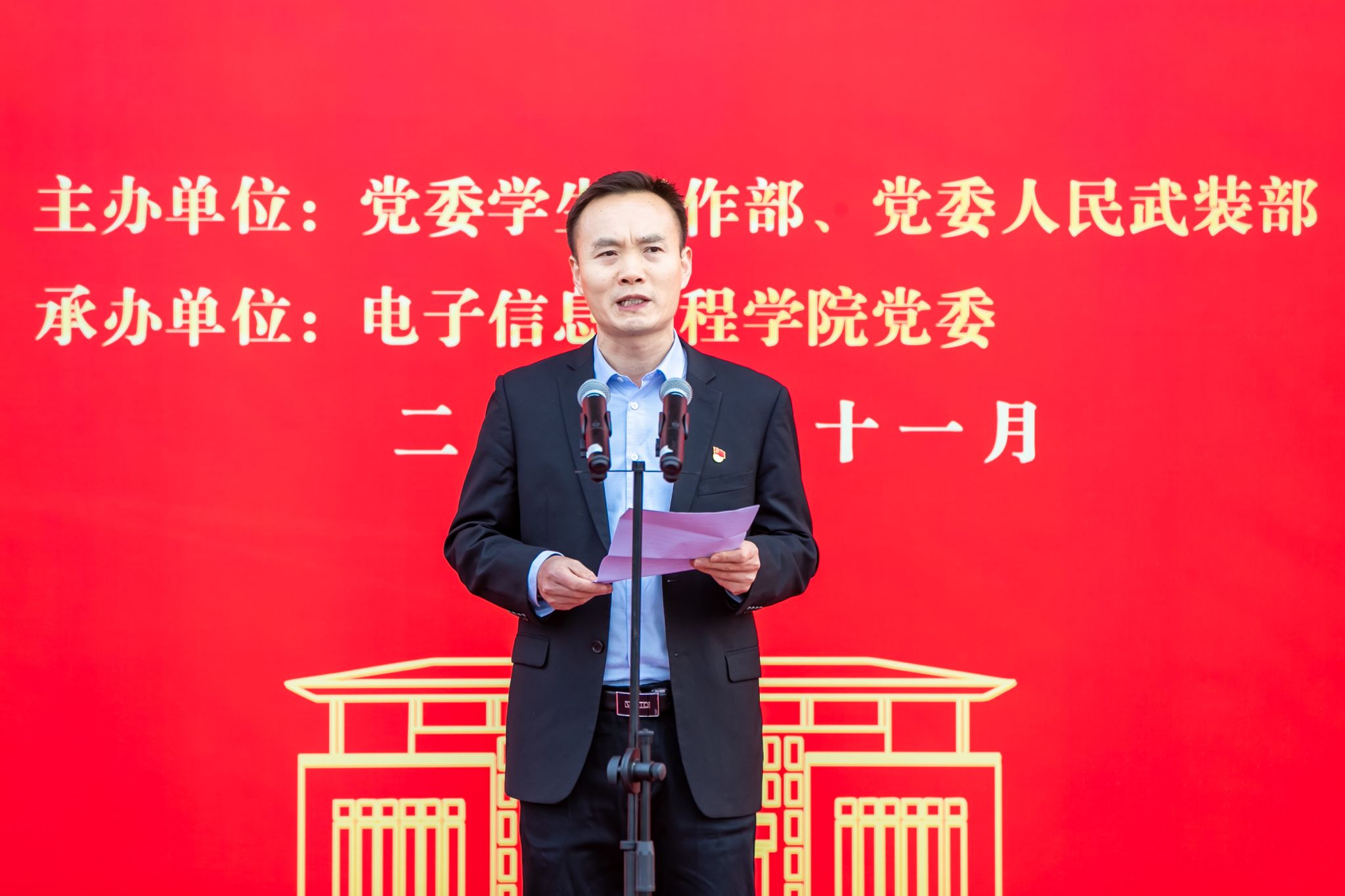 王延光以《厚植家国情怀 涵养进取品格》为题讲话。他希望师生不断强化坚守初心的定力,涵育坚毅前行的品格,永葆坚持奋斗的本色。他以电子信息工程学院月桐路学生科创团队的事迹激励同学们,要不懈努力、苦练本领,为大学生活勾勒斑斓色彩,在中国式现代化新征程中勇担青年使命,让青春在服务国家发展实践中绽放绚丽之花。