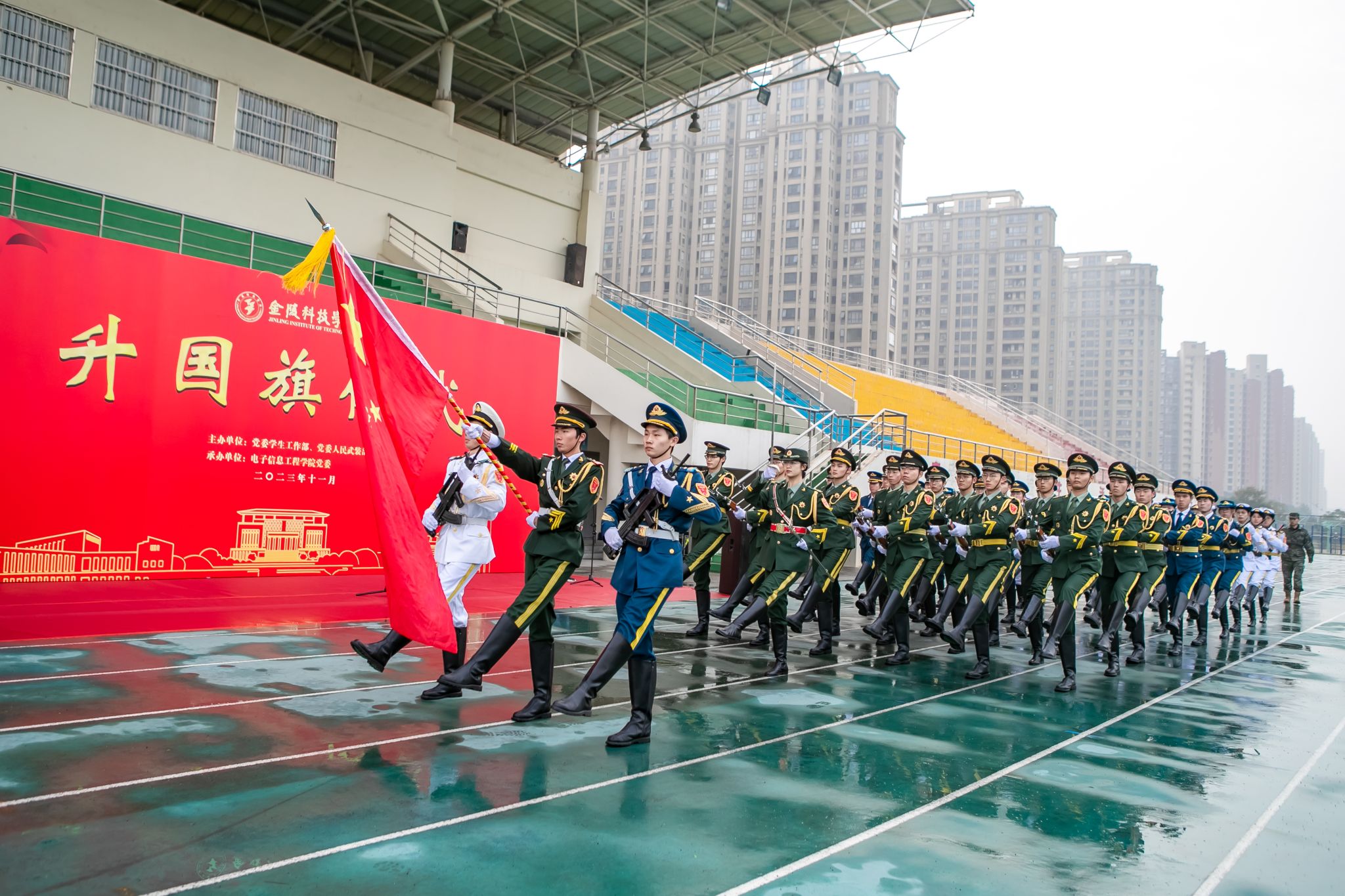 7点30分,升国旗仪式正式开始。国旗护卫队迈着整齐有力的步伐护送国旗至升旗台。在雄壮的国歌声中,鲜艳的五星红旗冉冉升起,师生齐唱国歌。