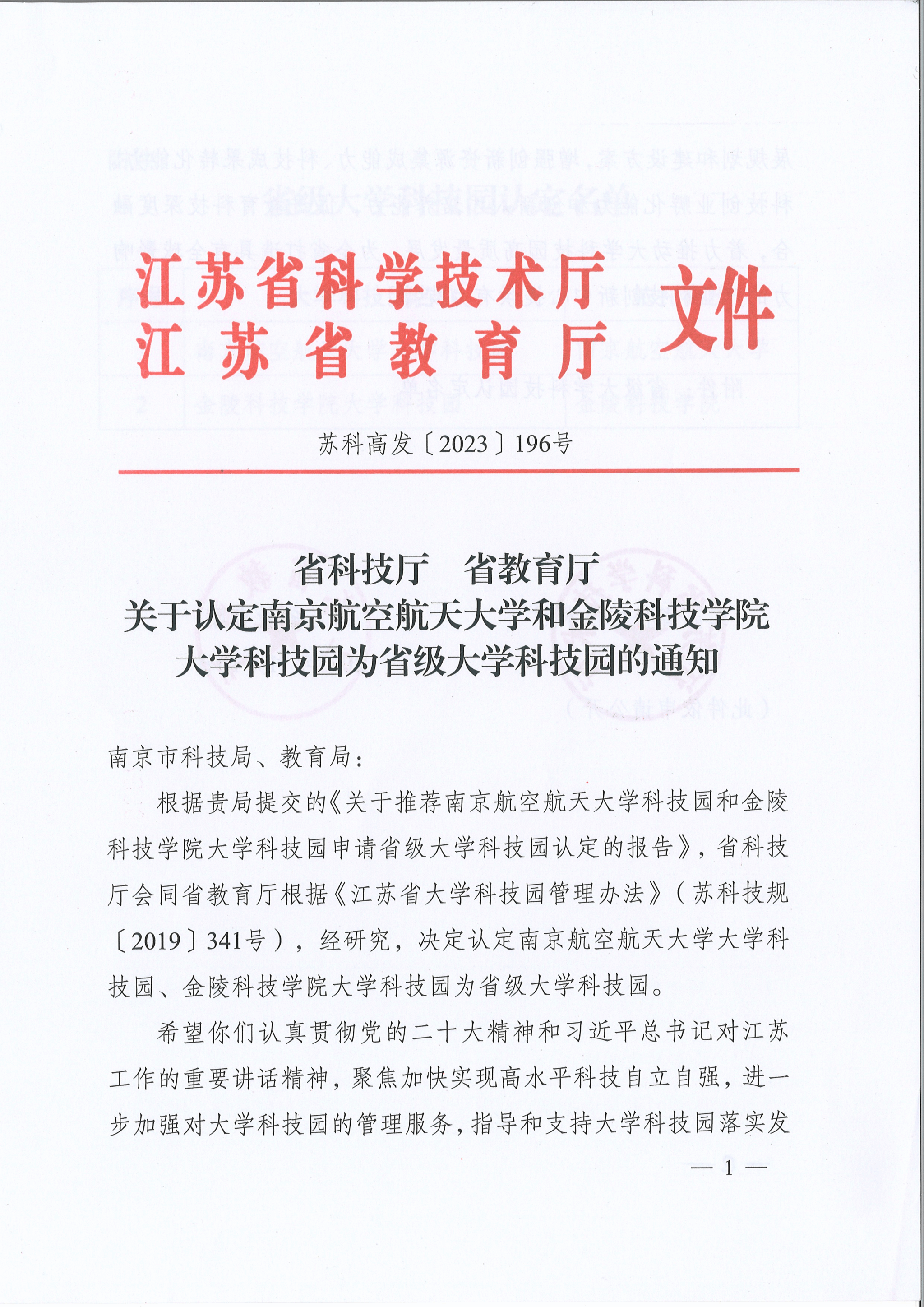 近日,江苏省科学技术厅、江苏省教育厅联合印发《省科技厅省教育厅关于认定南京航空航天大学和球王会体育官方网站大学科技园为省级大学科技园的通知》,经属地(区)审查,市科技局、教育局推荐,现场质询答辩、专家组评审,省科技厅、教育厅审议、公示等环节,认定球王会大学科技园为省级大学科技园。