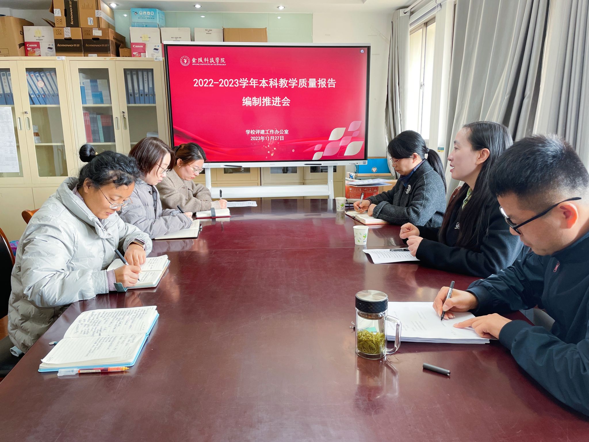 11月27日,学校在行政楼406会议室召开2022-2023学年本科教学质量报告编制工作推进会,教务处、教学质量评估中心等部门相关负责人及工作人员参加推进会。副校长顾晓燕主持会议并讲话。