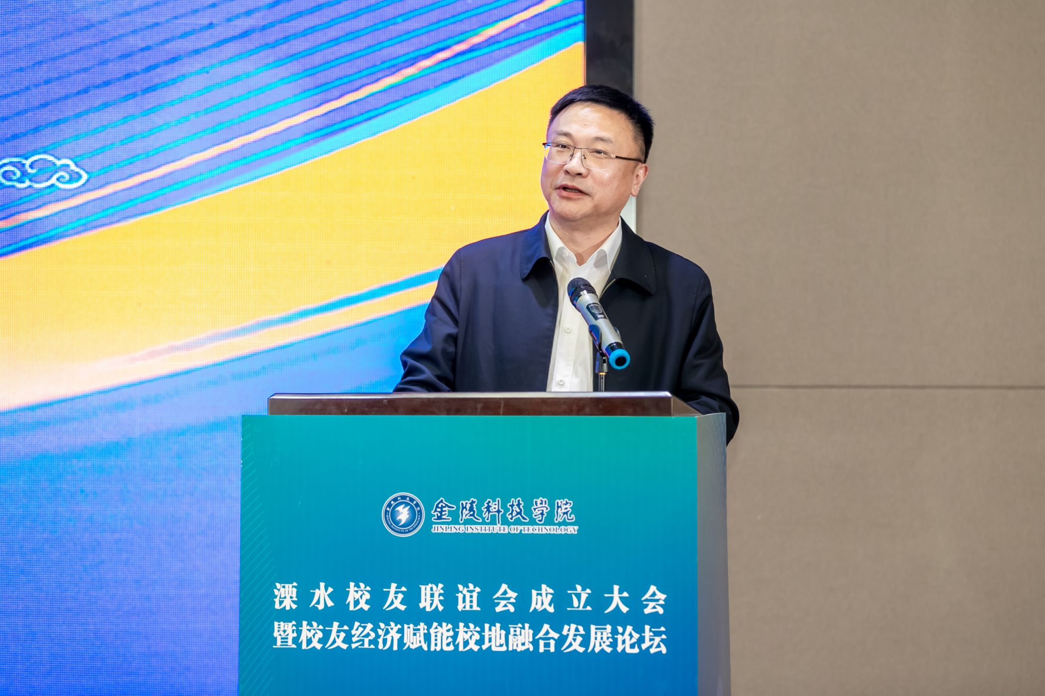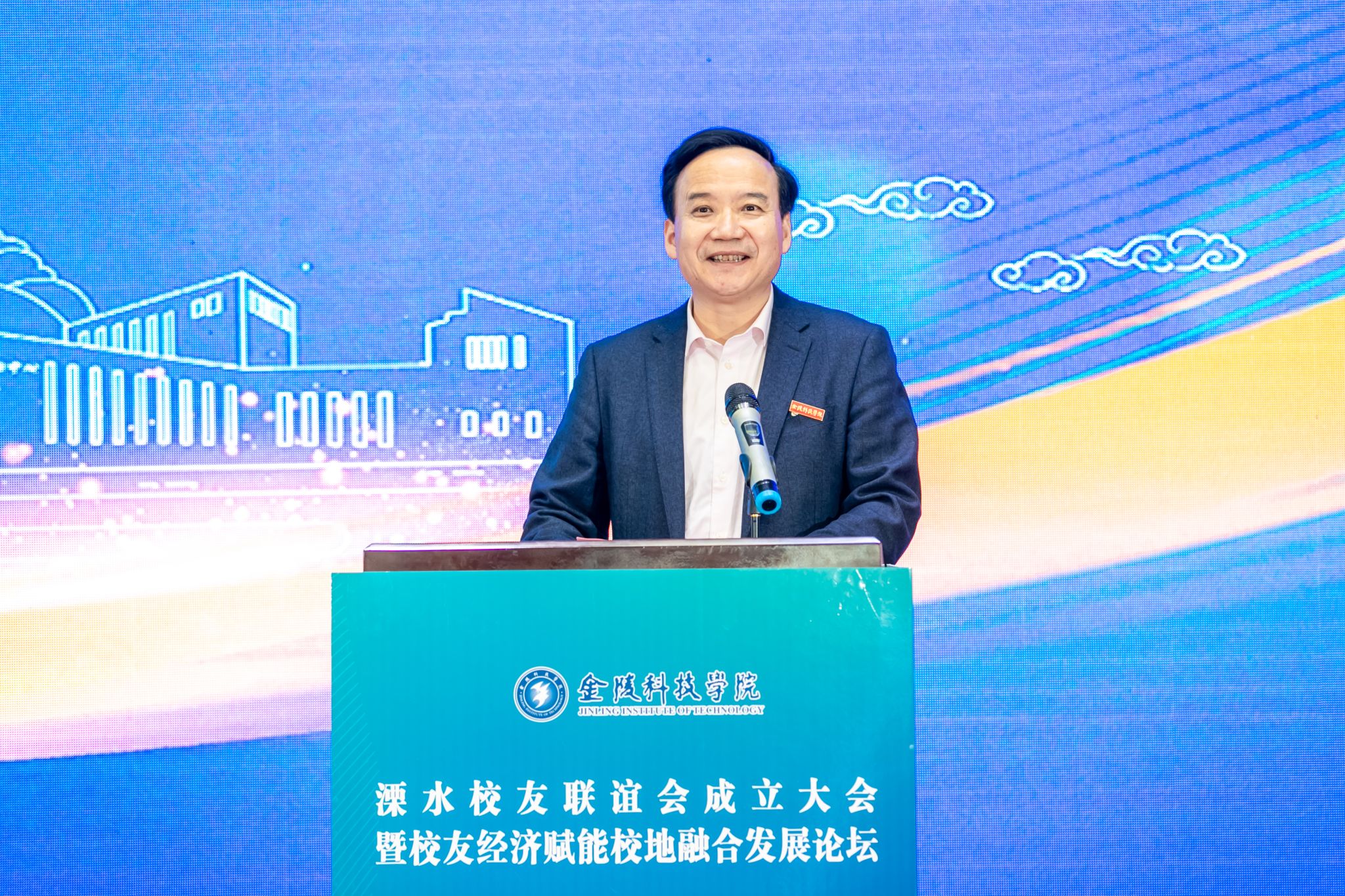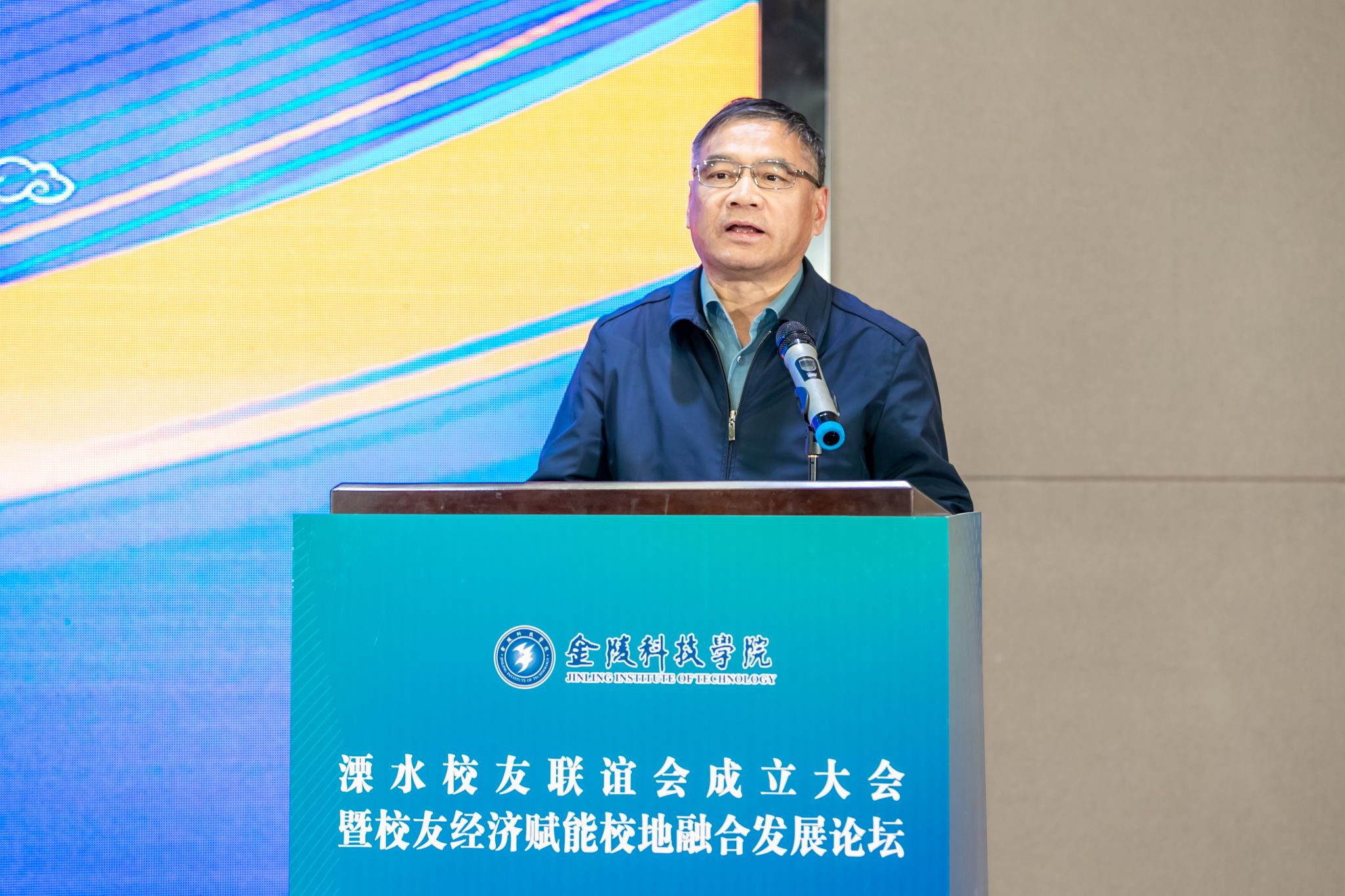 刘永彪在论坛讲话中介绍了球王会“地方性、应用型”办学定位,“政校城、行教企”融合发展优势,以及取得的科技创新成果和服务社会成效。他指出,校友经济不仅有助于推动经济发展,还有助于促进社会和谐,是地方和高校共同的战略资源、宝贵财富。溧水地理位置优越、交通便利,自然资源丰富、文化底蕴深厚,有巨大的发展潜力和竞争优势,也为广大校友提供了更好的投资环境和就业创业机会。他强调,溧水校友以及在宁校友企业要共商合作大计,共谋发展良策,充分发挥校友的行业、资源优势,加强区域、高校和校友之间的交流合作,凝聚金科校友力量助推“校友经济”赋能校地融合高质量发展。