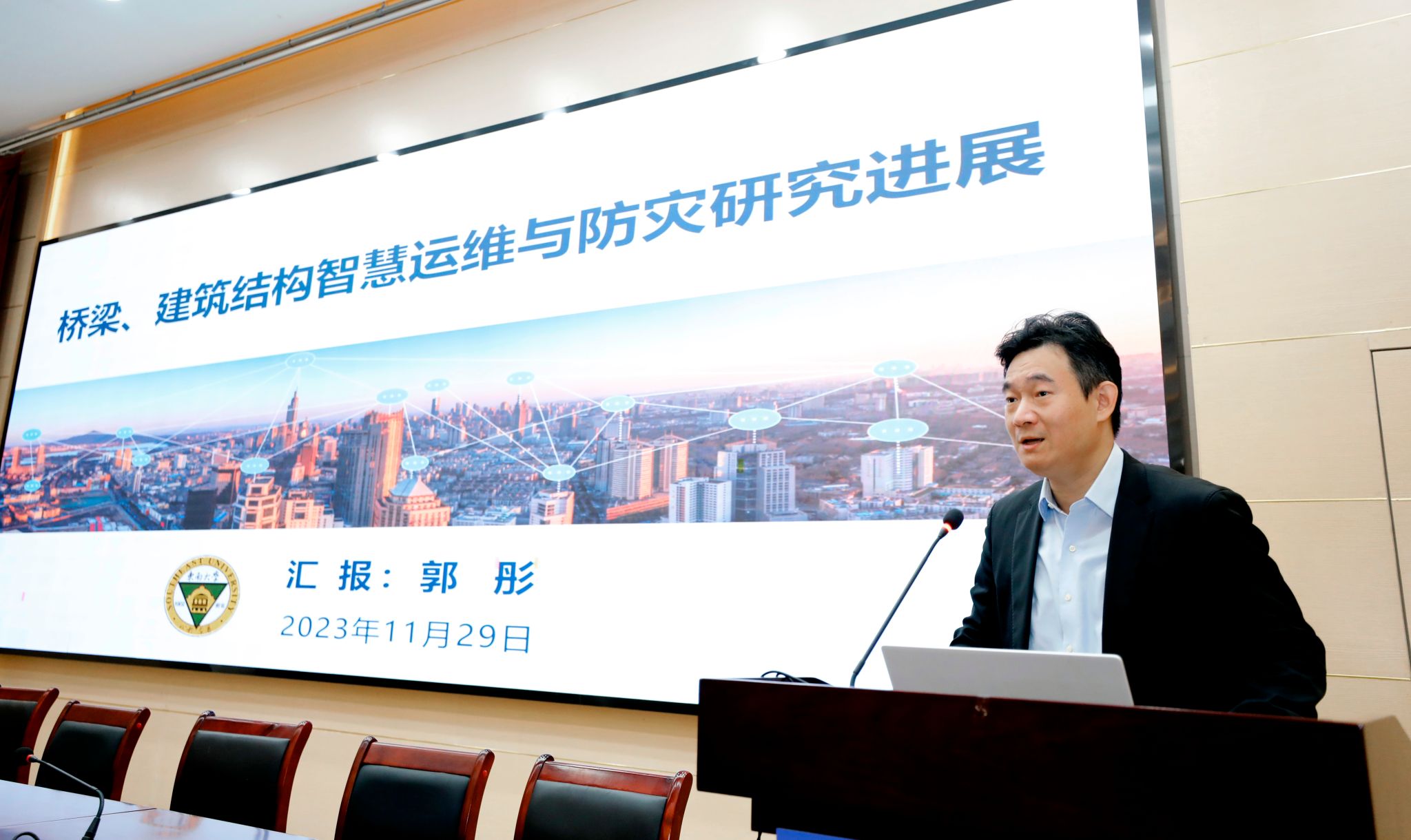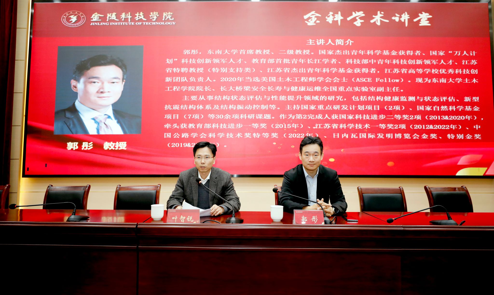 11月29日,国家杰出青年基金获得者、东南大学土木工程学院院长郭彤教授应邀做客金科学术讲堂,为球王会师生作题为《桥梁、建筑结构智慧运维与防灾研究进展》的学术报告。报告由副校长叶智锐主持。