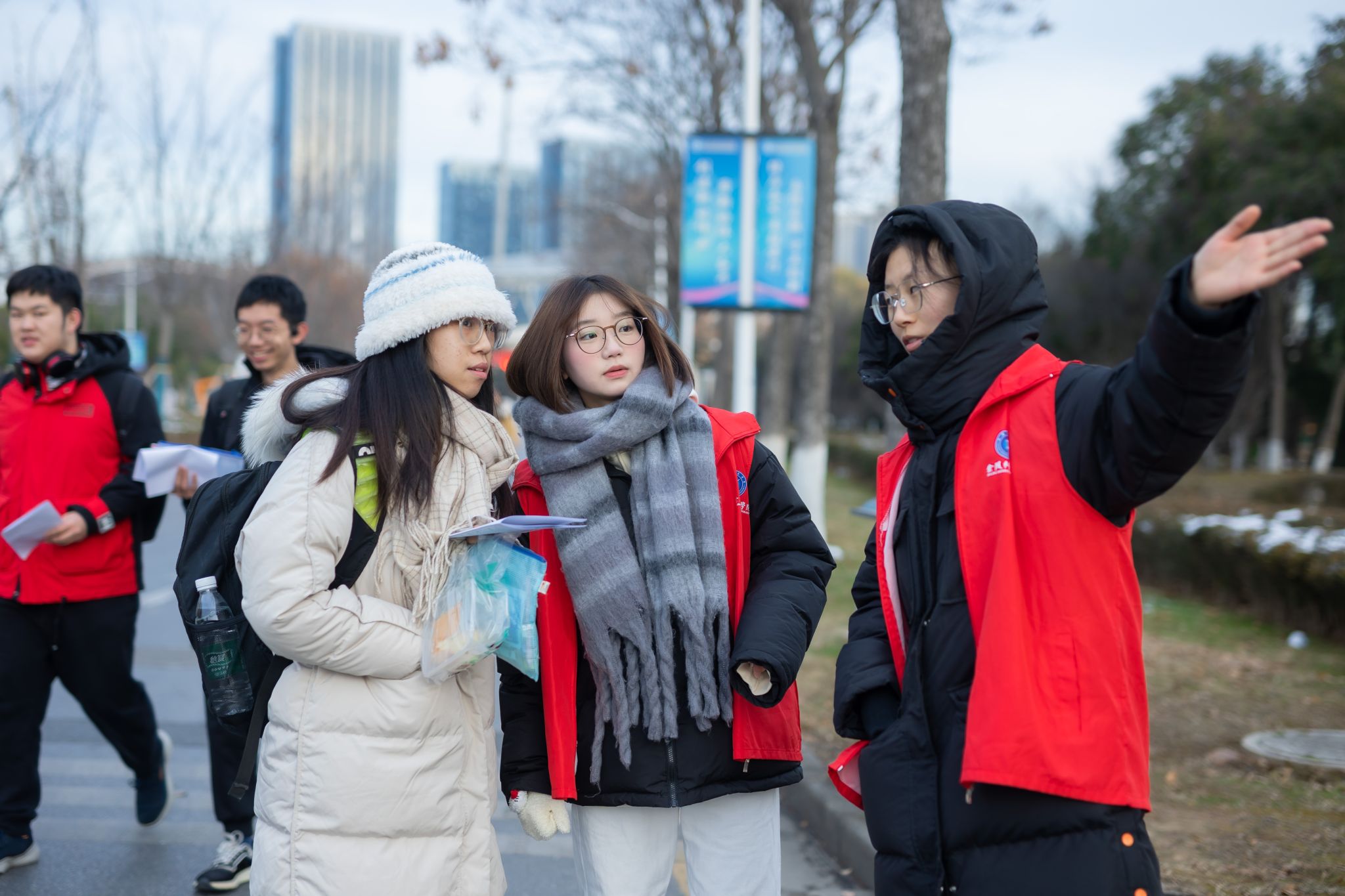 考试前夕,校党委书记、校长带队全流程检查组考准备情况,强化实战演练,并着重强调了“三无三稳三确保”的工作要求。考试期间,校领导带领有关部门负责人对考务与考试的全程进行了巡视巡检,对后勤保障、安全保卫等关键环节进行了现场指导,提出改进意见,确保考场环境安全、安静、舒适。为进一步优化考生服务,球王会提前通过微信公众号、学校官网发布了温馨提示,就考生关注的问题进行了详细解答,并在校门口放置了考场分布图和路标指引牌,为考生提供了便利。同时,设置了问询处、临时医务室,并为考生提供了红糖姜茶等防寒热饮,安排了学生志愿者进行现场指引和服务。