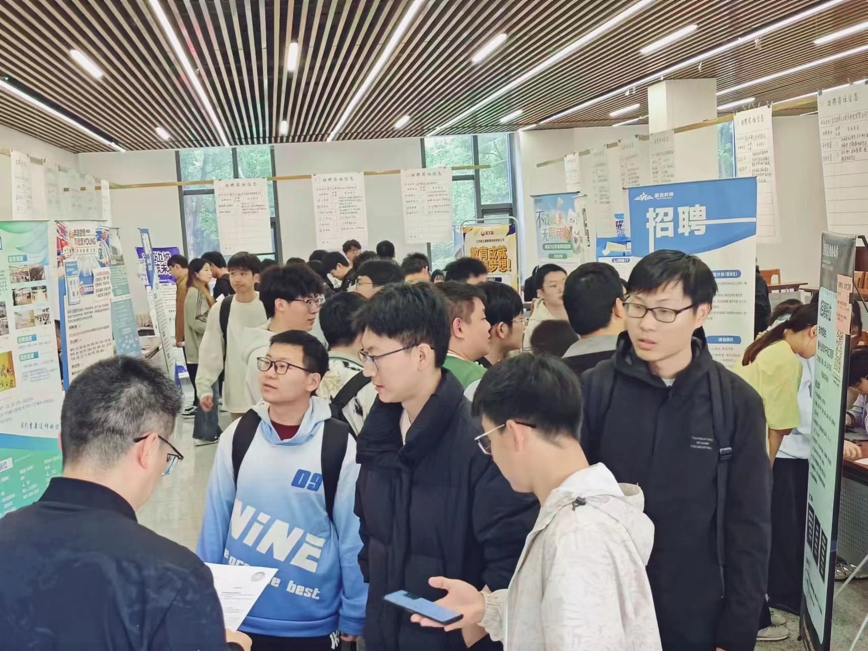 本次招聘会邀请了开沃新能源汽车集团股份有限公司、南京蔚来汽车销售有限公司、江苏海隆软件技术有限公司等52家优质企业进校招聘,涵盖智能制造、电子信息、生物医药等多个行业,提供就业岗位1200余个。