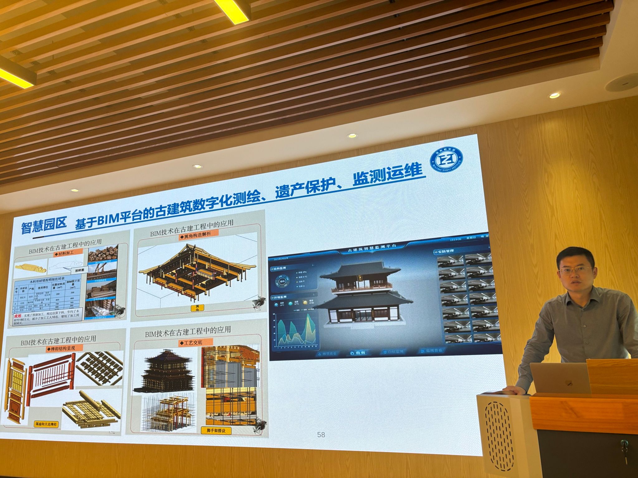 建筑工程学院院长刘志峰介绍了智慧建筑和建造微专业的开设背景和目的。智慧建筑和建造微专业负责人王瑶教授介绍了培养目标、课程设置、师资队伍、结业要求等。佘健俊作了题为《智能建造专业建设与人才培养的探索实践》的报告,倪树新作了题为《从智能建造到数字孪生运维全生命周期应用》的报告。