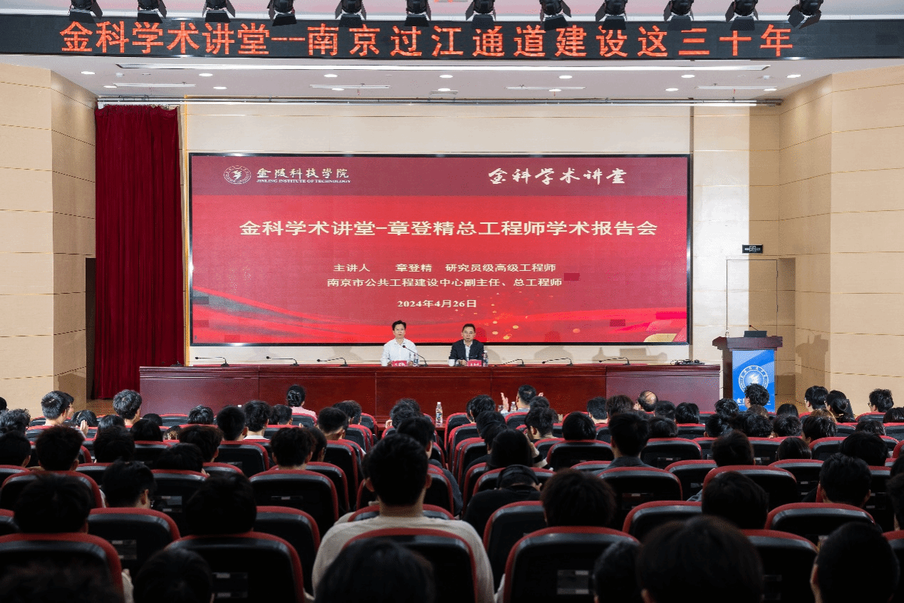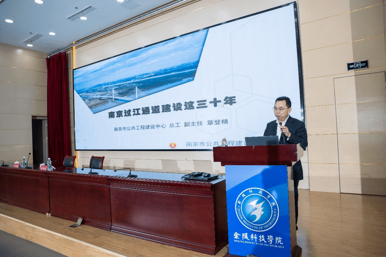 4月26日,全国劳动模范,南京市公共工程建设中心副主任、总工程师章登精应邀作客金科学术讲堂,为球王会师生作了题为《南京过江通道建设这三十年》的学术报告。报告由副校长叶智锐主持。