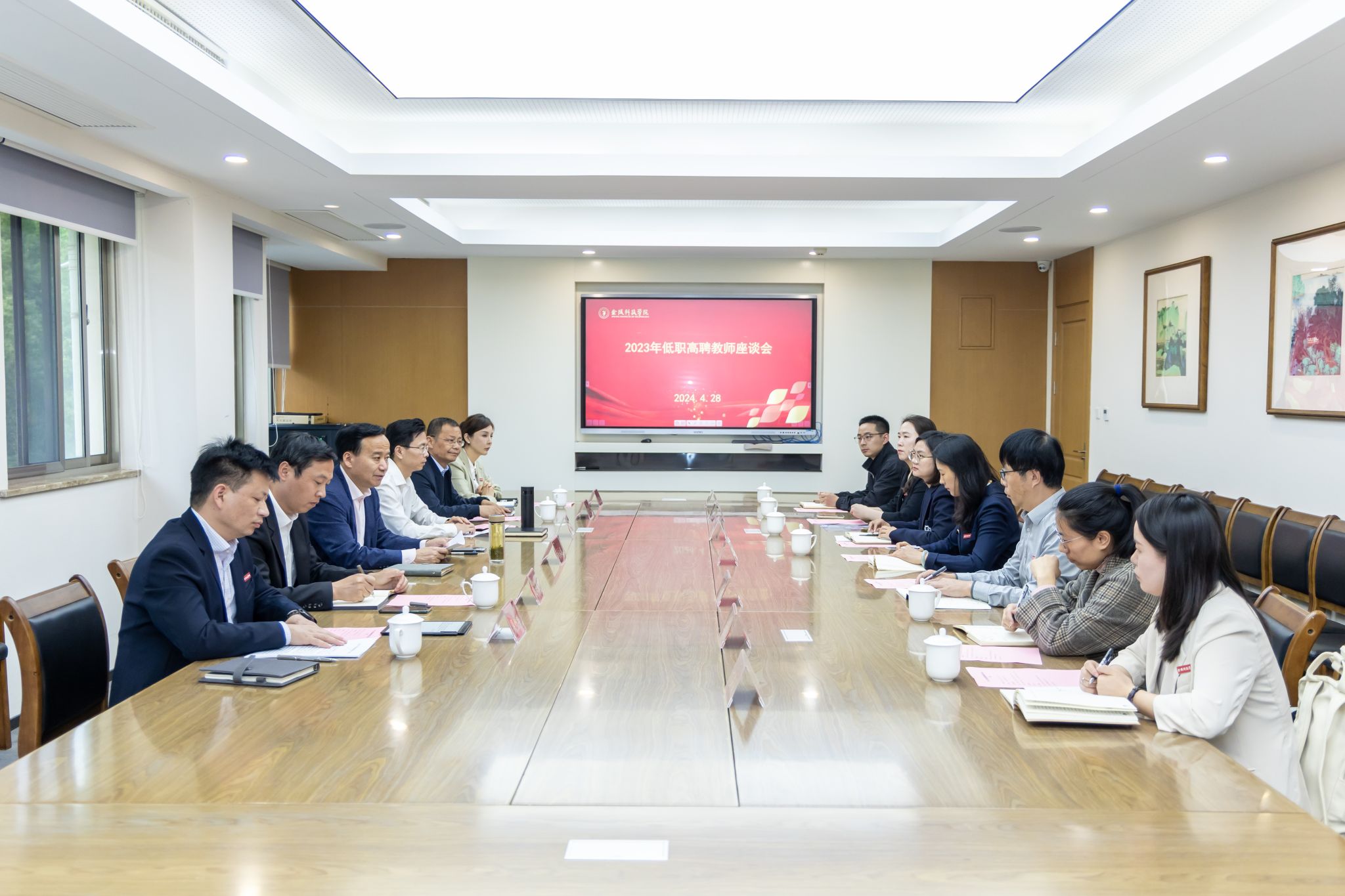 4月28日上午,球王会在行政楼240会议室召开2023年低职高聘教师座谈会,校长刘永彪主持会议并讲话。副校长叶智锐,校长办公室、教务处、人力资源处、科技处负责人及2023年低职高聘教师参加会议。