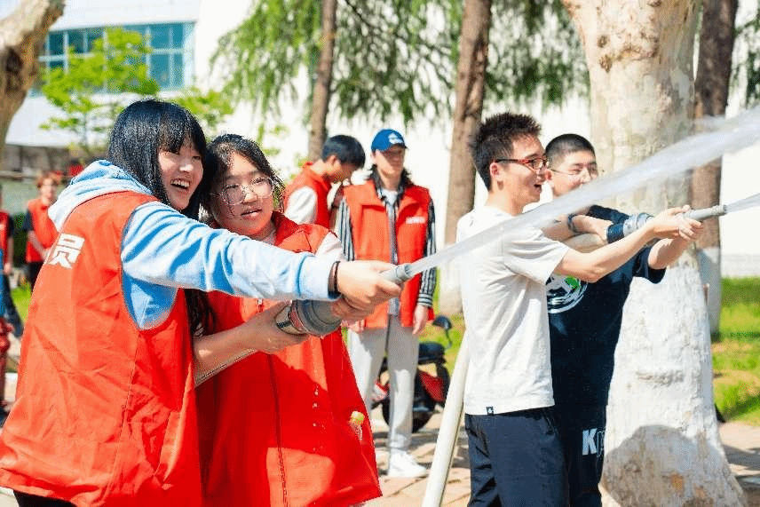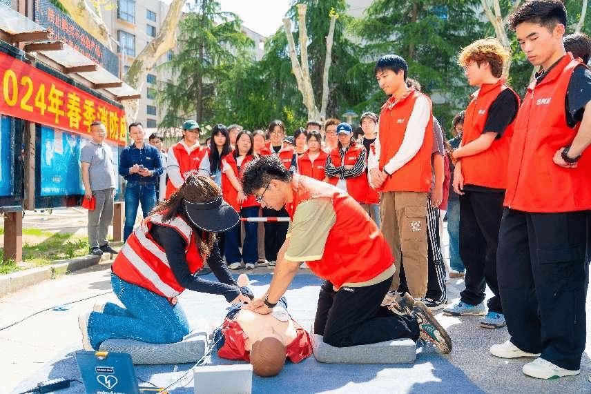 疏散演练活动结束后,全体义务消防队队员、22级和23级班级安全员、社区管委会成员等200余名学生参加了灭火器材使用、心肺复苏急救、消防水带灭火等实操训练。