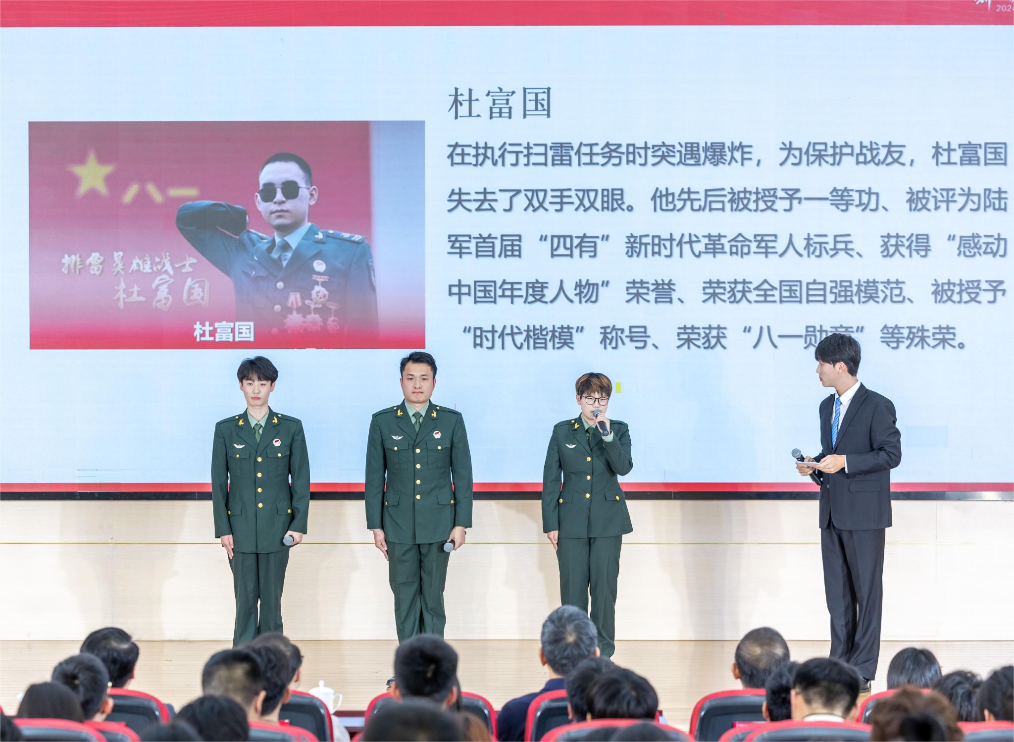 活动最后,刘志远向朋辈榜样团队颁发了学校“五育并举”标兵宣讲团聘书,鼓励他们牢记习近平总书记对青年人的殷殷嘱托,永远保持奋斗精神,以德铸魂、以智启慧、以体强身、以美润心、以劳淬技,争做有理想信念与家国情怀、有扎实学识与学习能力、有健康体魄与健全人格、有工匠精神与职业品格、有过硬技能与创新意识的时代新人。