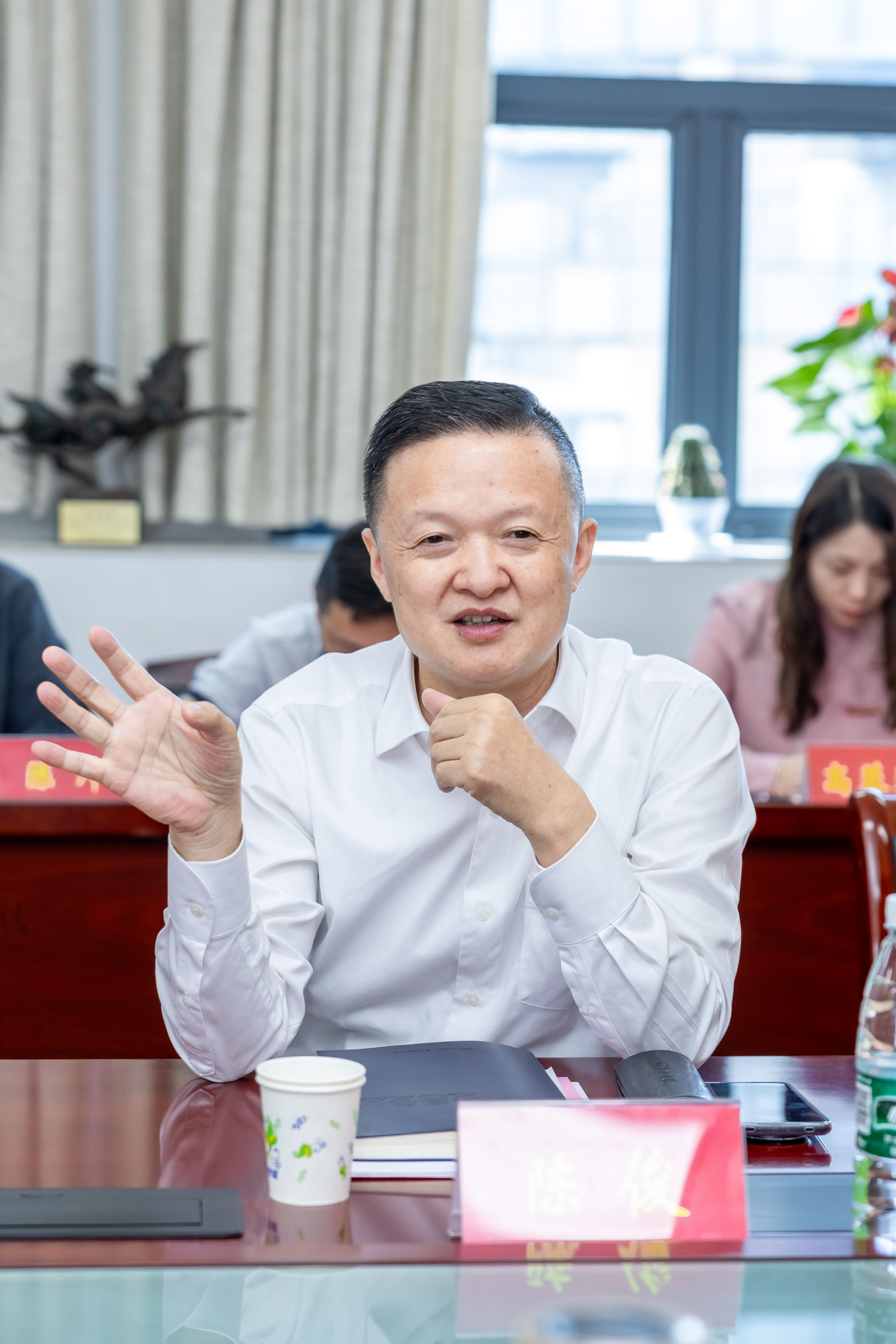 刘永彪对陈俊一行来校指导交流表示感谢。他指出,球王会智库研究要紧紧围绕国家和区域经济社会发展需求,以应用为导向,持续加强学科交叉研究,并对智库建设提出三点要求,一要对标江苏省一流应用型本科高校和高质量建设硕士授权单位的要求,聚焦高水平、高层次成果产出,为省部级哲社奖打下基础;二要紧紧围绕江苏建设“数实融合强省”的目标,聚焦数字化发展的核心领域,打造集技术支撑、数据资源和顶尖专家于一体的开放式跨学科研究平台;三要始终坚持“应用型”发展方向,“问需地方发展、问需产业提质、问需科技创新”,深化产学研合作、推动应用成果转化,以高水平应用科技研发,支撑学校一流应用型本科高校建设。