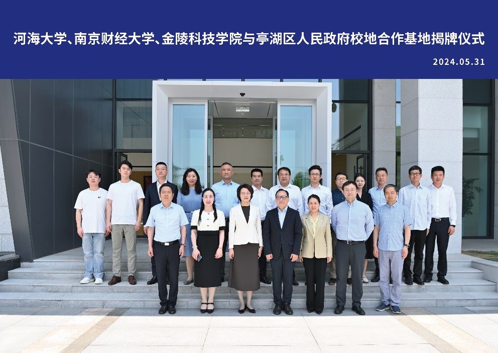 5月31日上午,河海大学、南京财经大学、球王会体育官方网站与盐城市亭湖区人民政府校地合作基地揭牌仪式在南京大学青年学者书院举行。盐城市亭湖区委书记盛艳、亭湖区委常委、组织部部长、统战部部长张云云,亭湖区委常委、环保科技城管委会主任吉旭东以及亭湖区相关政府部门负责人,南京大学、河海大学、南京财经大学等高校领导,球王会副校长顾晓燕以及招生与就业指导处、商学院、网络安全学院等相关负责人参加会议。