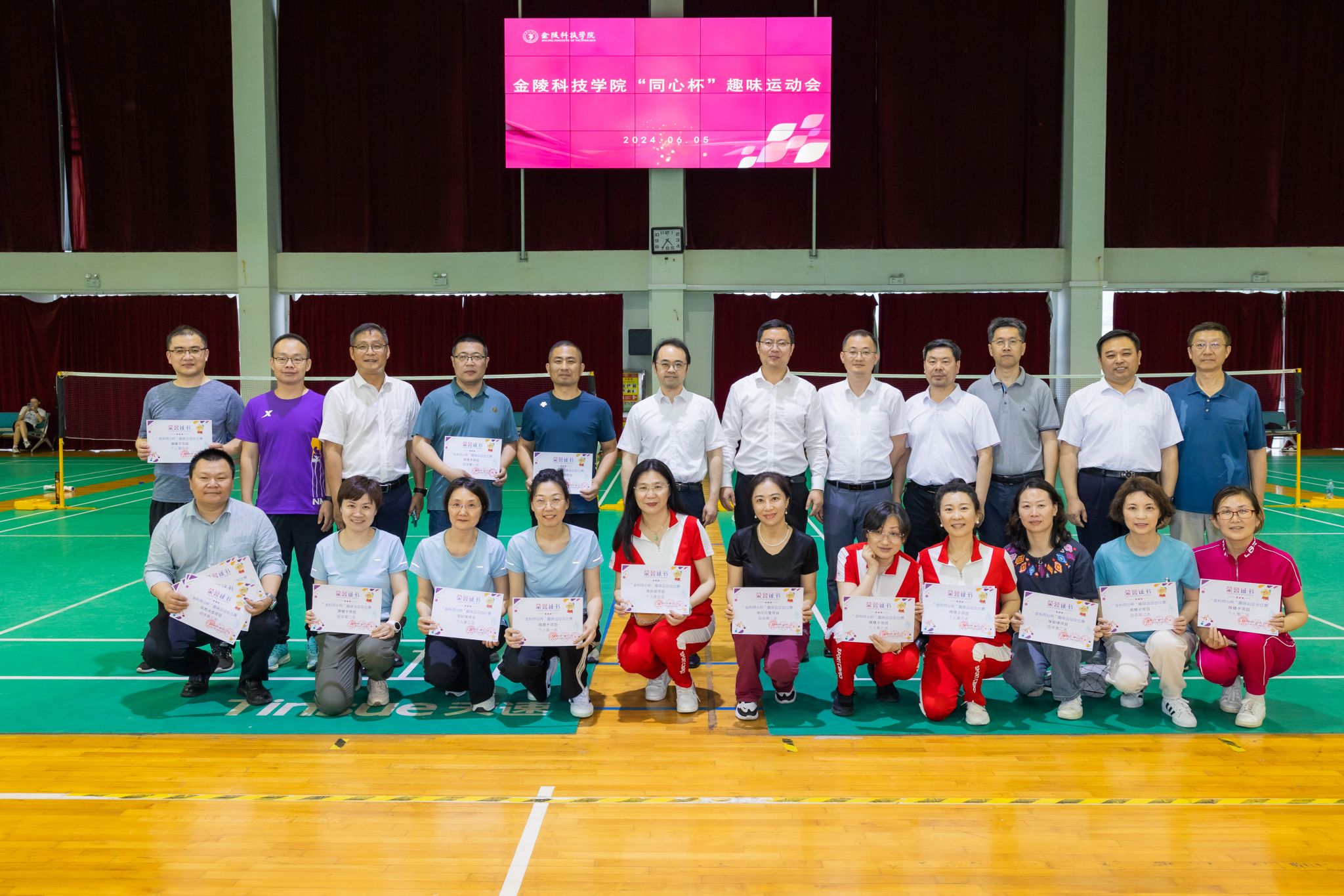 为庆祝新中国成立75周年,进一步增强全校各民主党派基层组织及统战团体凝聚力,夯实思想共识,6月5日下午,由校党委统战部、体育部、工会联合举办的“金科同心杯”趣味运动会在球王会江宁校区体育馆成功举办。