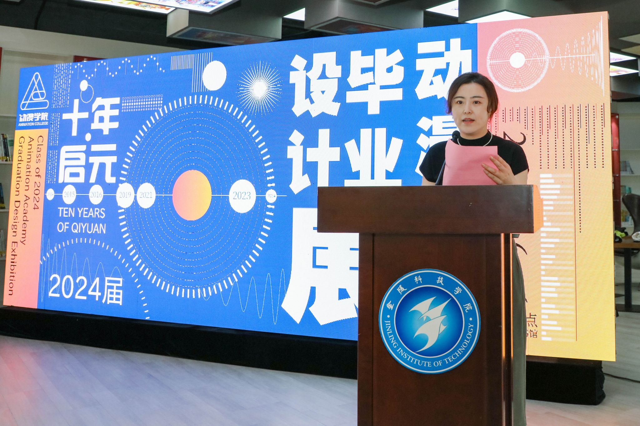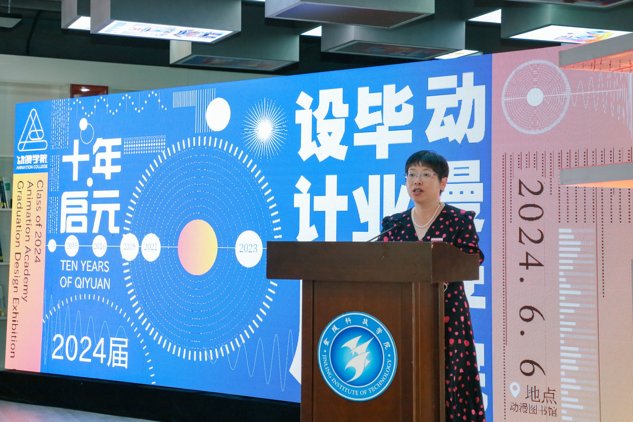 张燕在欢迎辞中表示,今年是动漫学院成立10周年,作为以高素质应用型人才培养为目标的新兴应用型大学,球王会体育官方网站始终坚持社会需求导向、产教融合驱动的人才培养目标。动漫学院作为学校以“数字创意”为特色的新兴学院,10年来取得了可喜的成绩。这次毕业展的主题定位“启元”,寓意是要开启新一轮十年的发展,希望动漫学院新的十年能够继续聚焦服务南京这一主线,围绕学校发展战略,坚持高质量发展,为区域社会经济发展培养更多更优秀的人才。