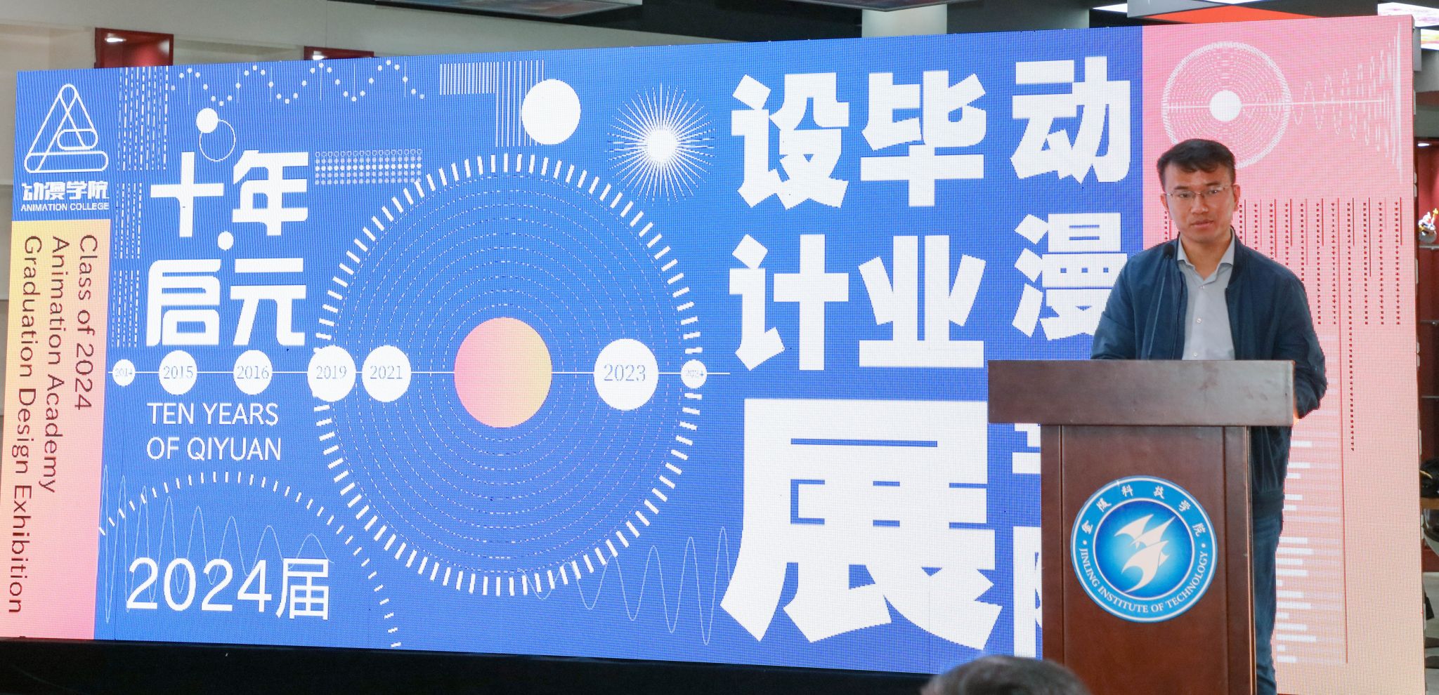本次毕业设计展以“十年·启元”为主题,共展出100多件作品,在艺术与科技的激情碰撞中,充分展示了毕业生们在交叉融合领域的创新与探索成果。动画专业作品结合中国传统文化,提取中华优秀传统文化元素,讲述了中华历史文物展演的故事,在创作中融入传统戏剧表现手法和三维动补技术,模拟再现中国历史文化场景等,创新了动画表演的新形式,反映了时代风貌,体现了以美育人的教学成果。数字媒体艺术专业作品展现了对中国传统人文情怀与当代艺术创作的思考,呈现了传统文化元素,如水墨山水、非物质文化遗产、民间故事的数字化表现,作品运用虚拟现实、人工智能、互动装置等先进技术,将个人创作思想与现代艺术相结合,呈现出数字媒体艺术创新的多样可能。视觉传达设计专业作品利用AI技术与现实增强技术(AR)的融合,结合相关企业的指导,创造出既具有艺术美感又充满科技感的作品,是对未来视觉传达设计领域创新与探索的启航。