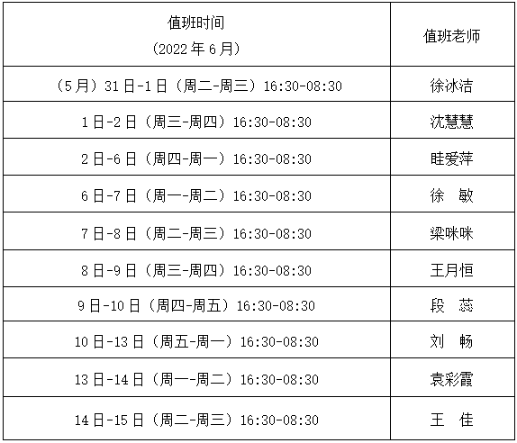 2.疫情期间校内24小时热线值班安排(见下表)