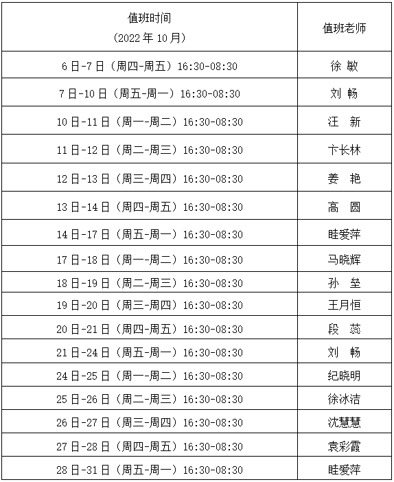 2.疫情期间校内24小时热线值班安排(见下表)