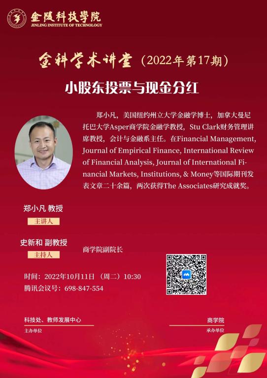 关于举办线上“金科学术讲堂—小股东投票与现金分红”学术报告的通知