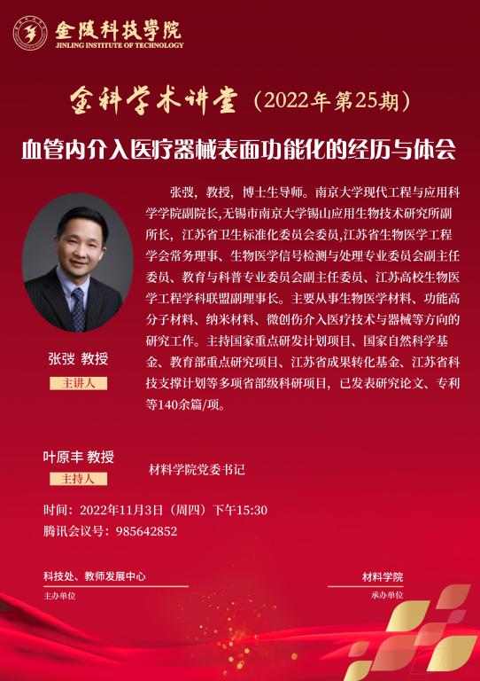 关于举办线上“金科学术讲堂—血管内介入医疗器械表面功能化的经历与体会”学术报告的通知