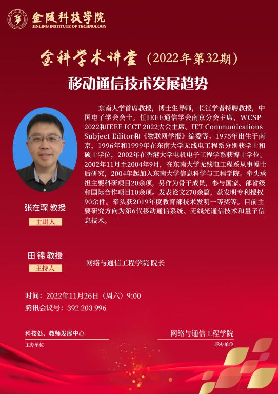 关于举办线上“金科学术讲堂——移动通信技术发展趋势”学术报告的通知