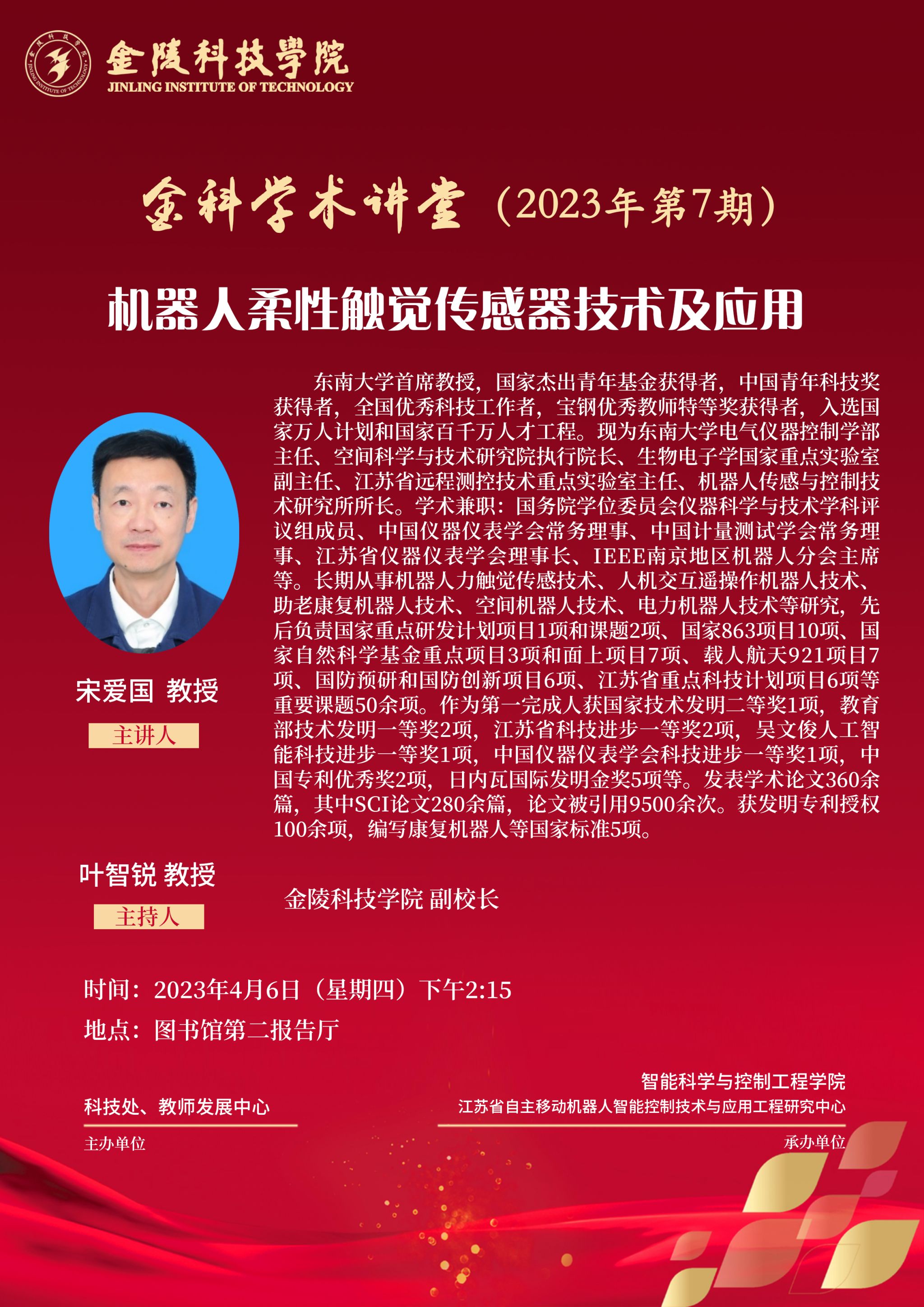 关于举办线下“金科学术讲堂——机器人柔性触觉传感器技术及应用”学术报告的通知