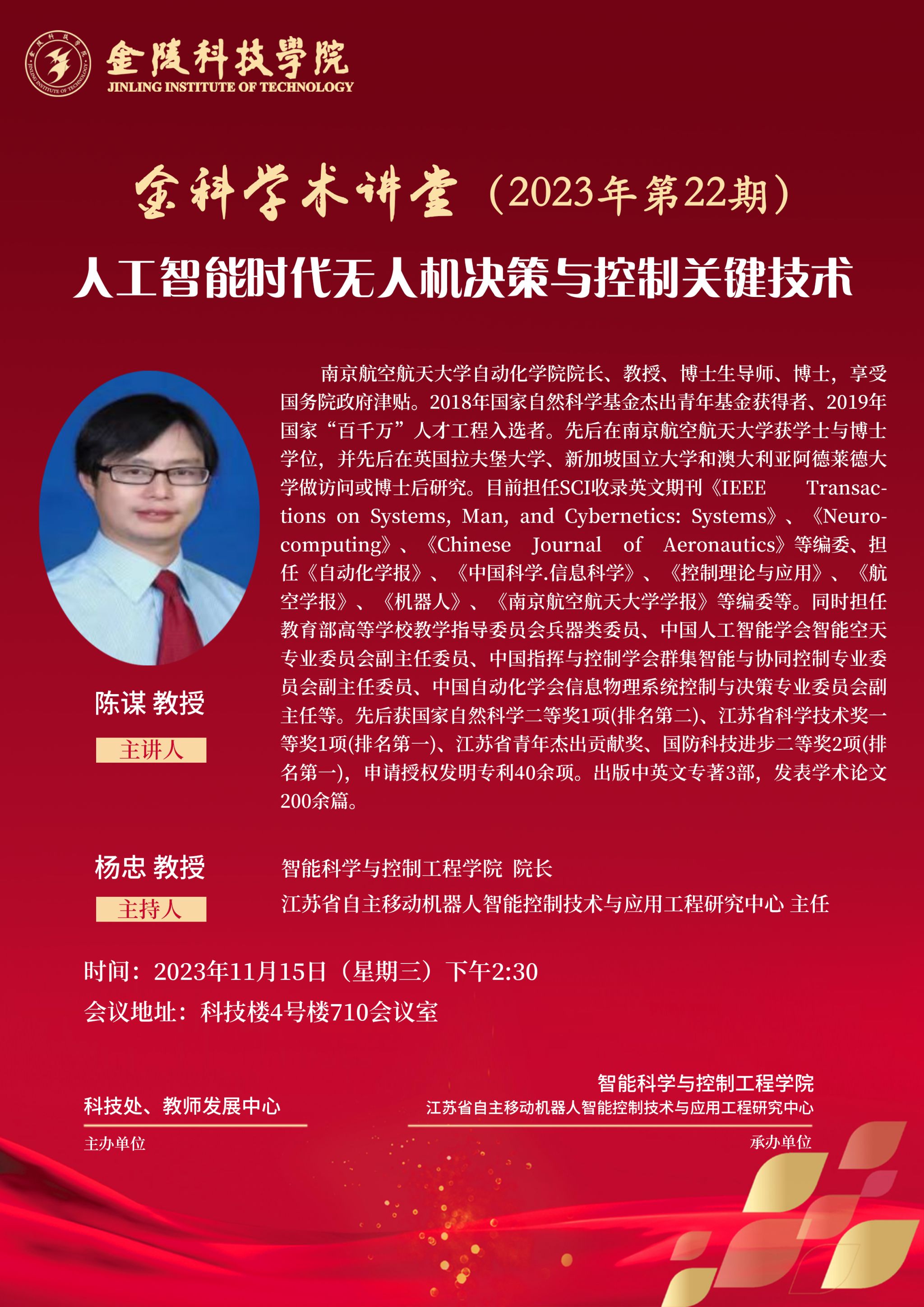 关于举办“金科学术讲堂——人工智能时代无人机决策与控制关键技术”学术报告的通知
