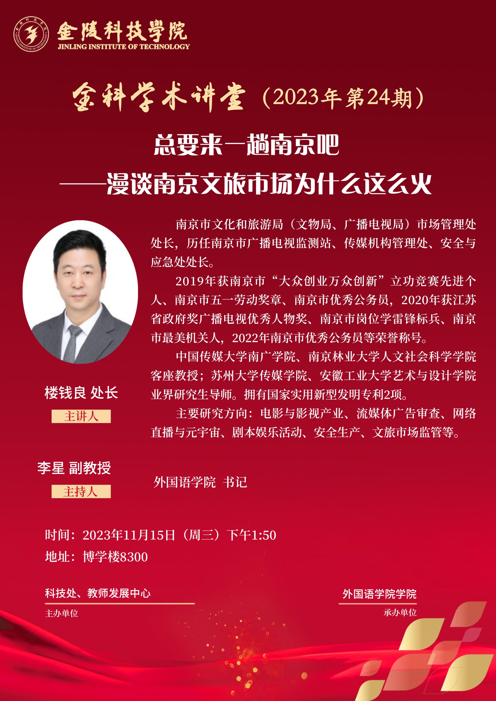 关于举办“金科学术讲堂:总要来一趟南京吧——漫谈南京文旅市场为什么这么火”学术报告的通知