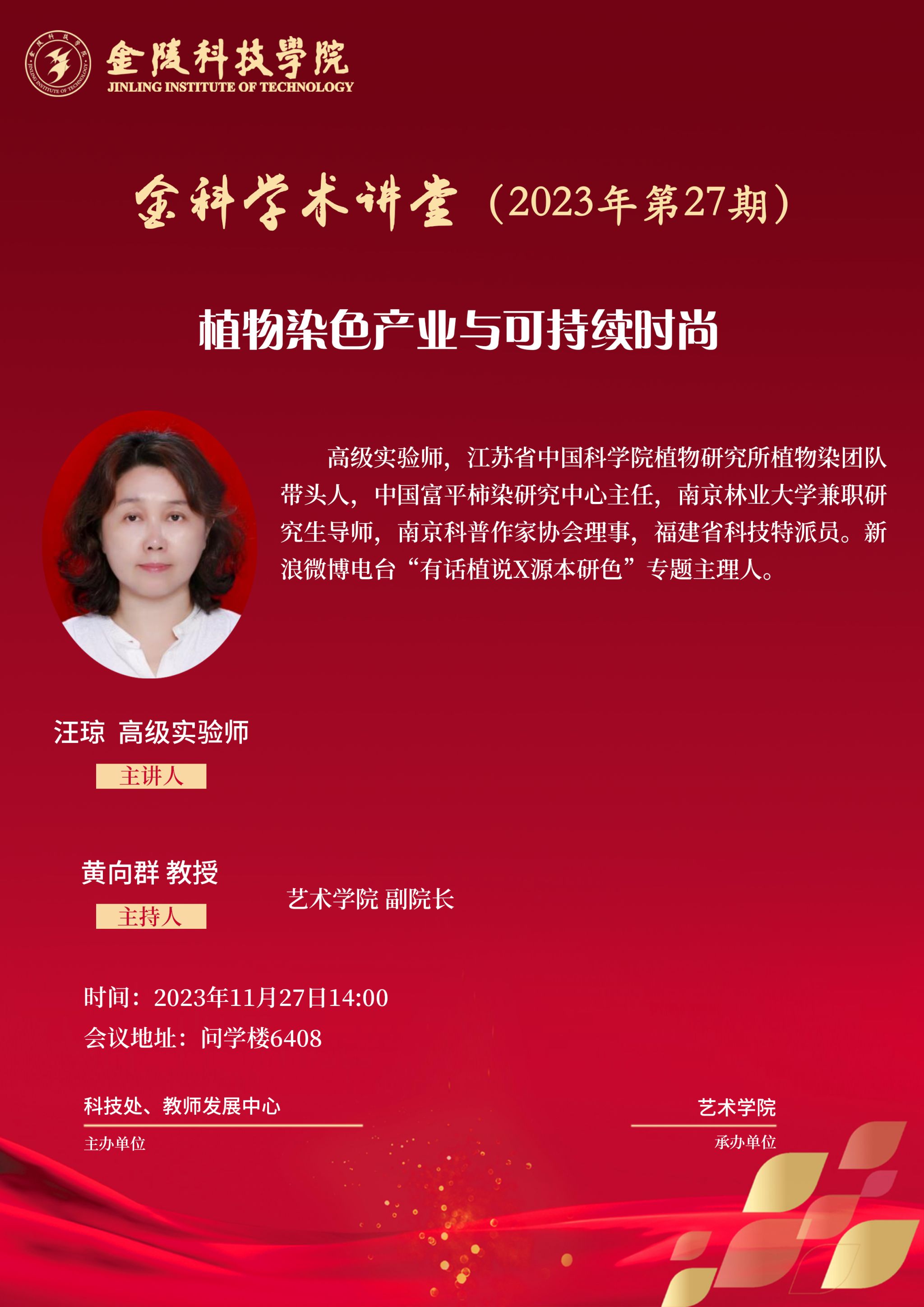 关于举办“金科学术讲堂——植物染色产业与可持续时尚”学术报告的通知
