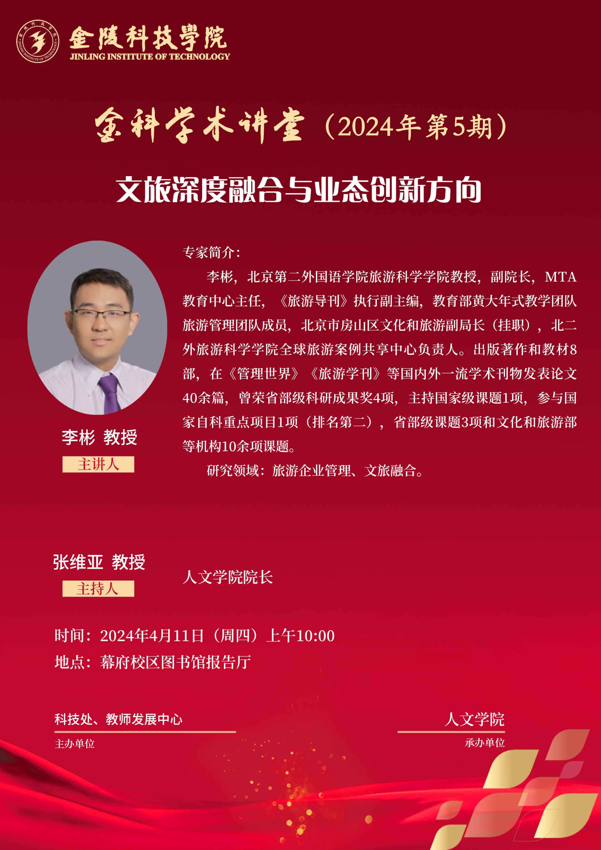 关于举办线下“金科学术讲堂——文旅深度融合与业态创新方向”学术报告的通知