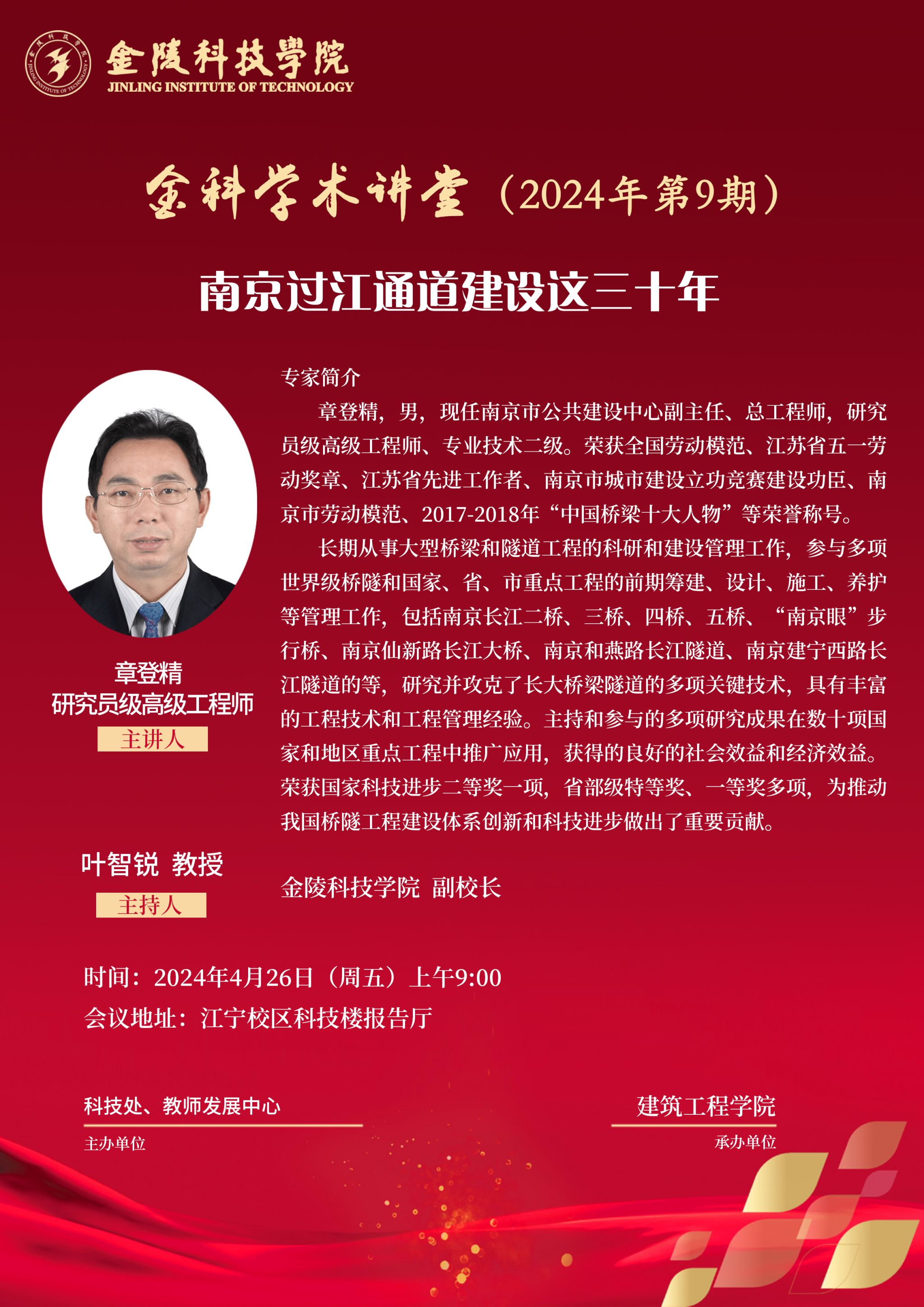 关于举办线下“金科学术讲堂——南京过江通道建设这三十年”学术报告的通知