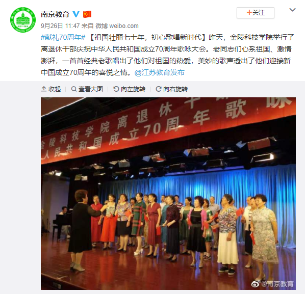 本文刊于2019年9月26日南京教育局官方微博“南京教育”,链接: