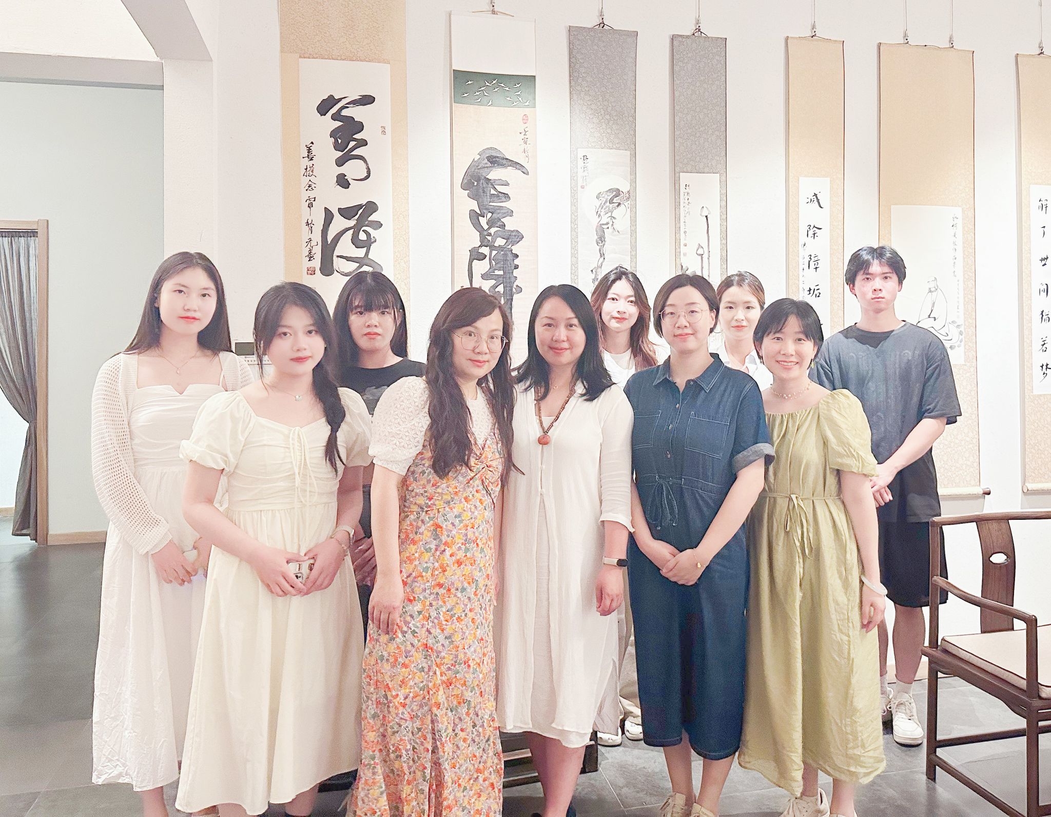活动现场,李星和学生们围坐在一起,品尝着清淡而健康的素食,氛围轻松愉快。在品书画环节,李星向学生们讲解了多幅中国古代书法和绘画作品,透过艺术的形式传达了教育与美学的内在联系。她提到,艺术不仅是审美的享受,更是心灵的熏陶,希望学生们能在忙碌的学习生活中,也不忘培养对美的感受力和创造力。