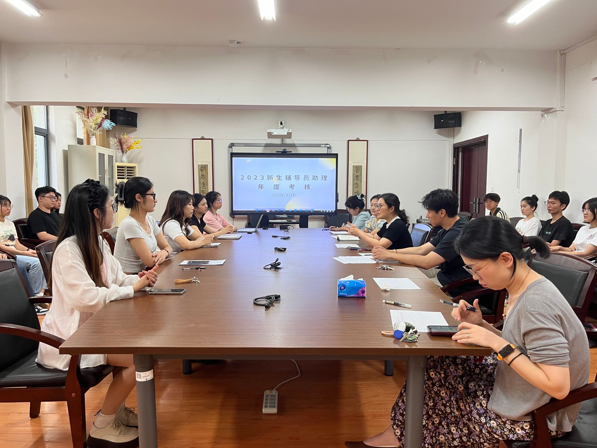 6月12日下午,在幕府校区崇文楼310会议室,人文学院举办了2023级新生辅导员助理考核会。人文学院党委副书记董宇、学工办主任童明明、辅导员马思齐、靖晶、汪新、阿娜尔与2023级新生辅导员助理参加了考核,报名2024级新生辅导员助理的同学观摩了考核会。