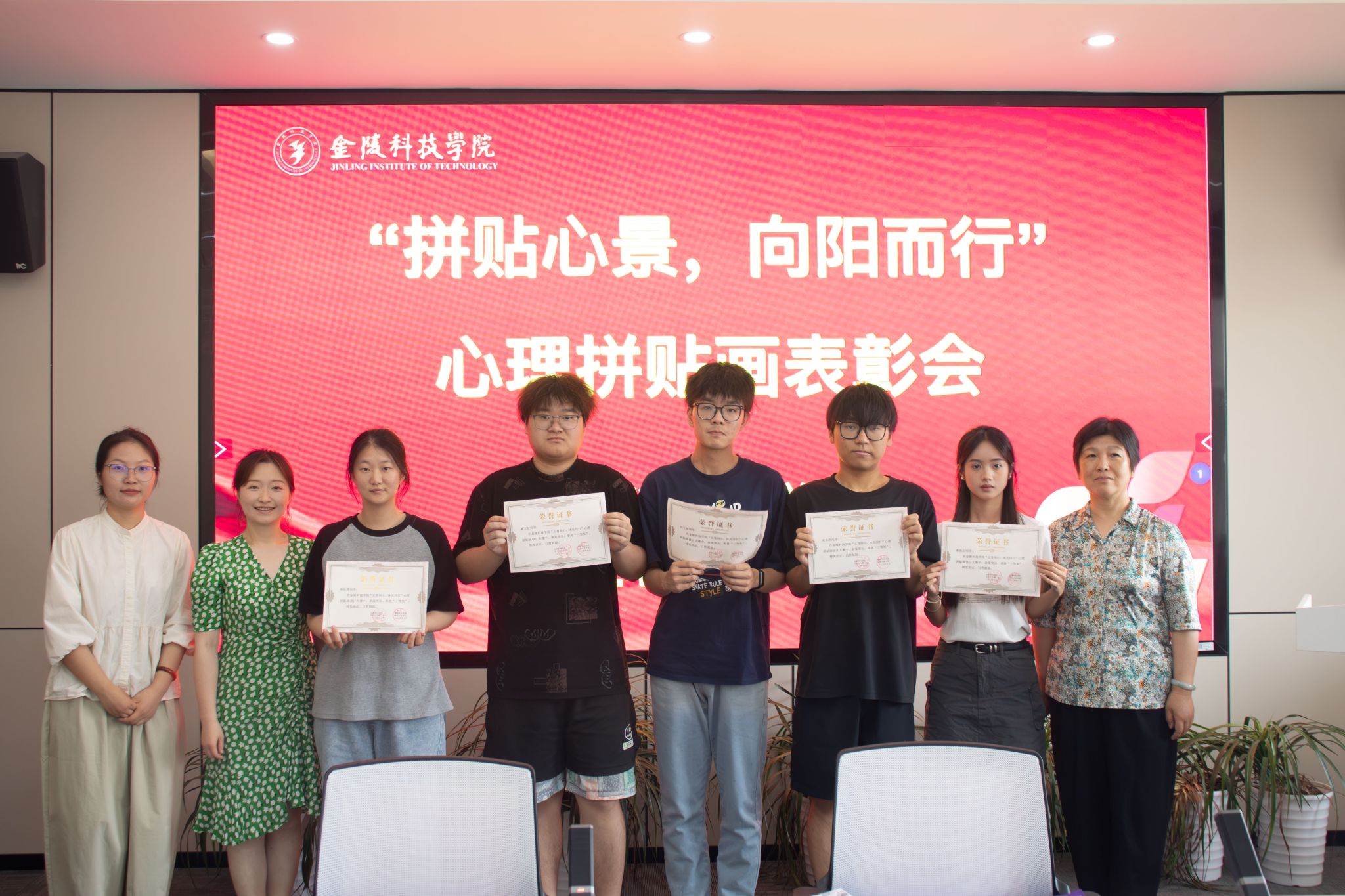 本次活动由学校大学生心理健康教育中心主办,材料工程学院承办。通过线上线下齐宣传,收取全校近20幅作品,综合考虑原创性与设计性,最终评选出一等奖3名、二等奖4名、三等奖6名。6月17日上午,我院在知行楼A506举行了颁奖典礼,院党委书记陈健、党委副书记韩铖、辅导员王敏、心理委员及获奖同学参加。韩铖指出,艺术作品能有效抒发情绪、表达感受,要以积极的心态“跑好人生马拉松”。陈健鼓励同学们专注当下,寻找科学的解压方式,保持阳光,做到德智体美劳全面发展。