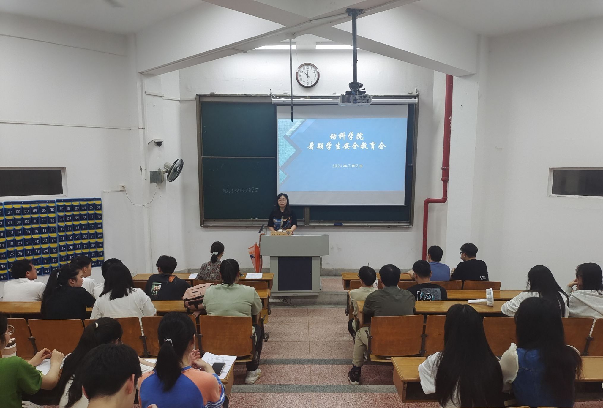 为切实做好暑期学生安全管理和服务保障工作,动科学院于2024年7月2日在农科楼四阶教室召开了2024年暑期留校及校外实习学生安全教育大会。学院党委副书记黄淑婧、学工办副主任、2021级辅导员吴旖旎以及全体暑期留校及校外实习学生参加。