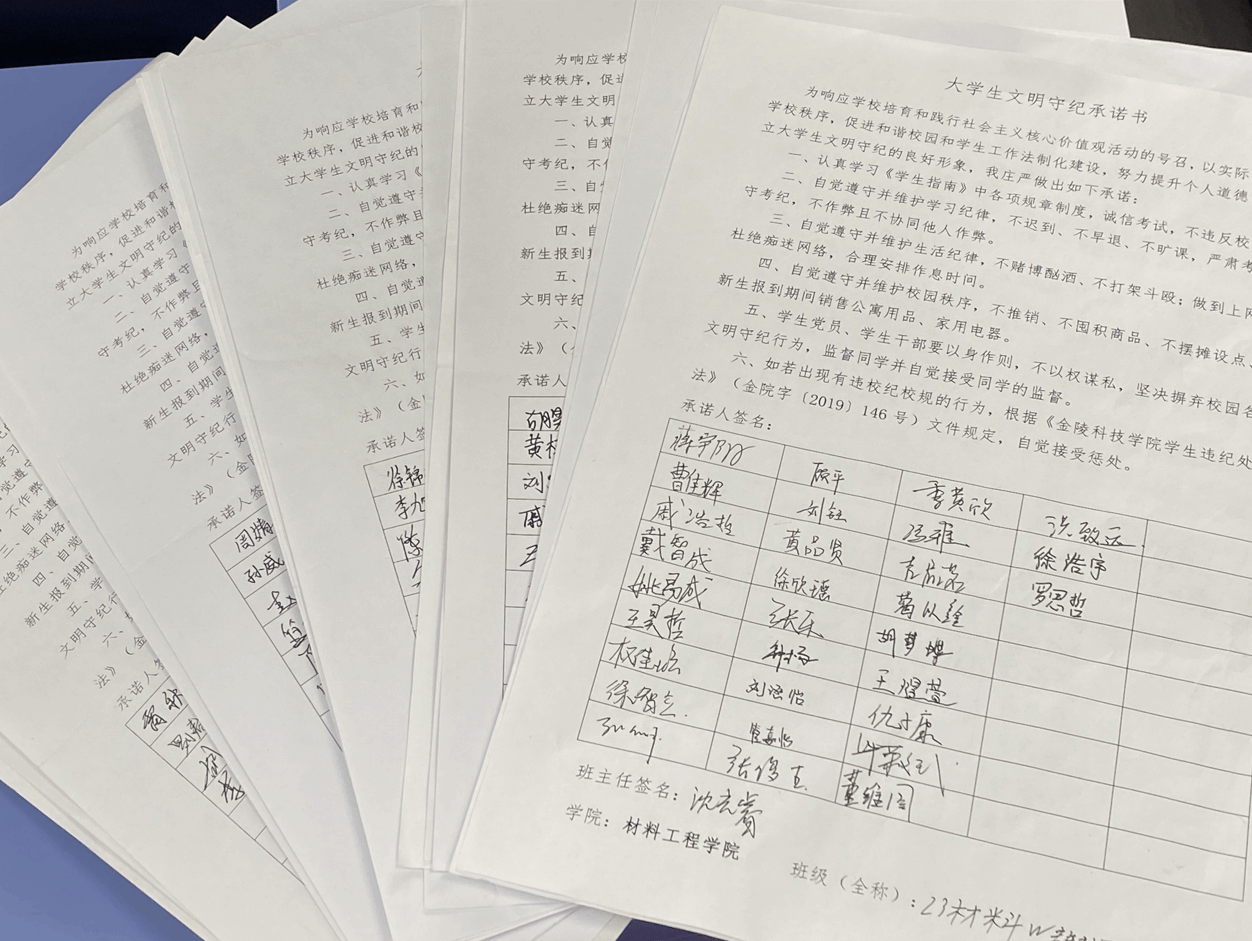 班会上,各班班主任、辅导员根据班级学风建设的实际情况,结合真实的典型案例,着重强调了考试违规和作弊的严重后果,引导学生树立正确的考试观念。同时,组织同学们学习《球王会体育官方网站学生违纪处分办法》《球王会体育官方网站关于进一步加强考风考纪的实施意见》和《球王会体育官方网站学士学位授予工作实施细则》等相关规定,确保每位学生都完全知晓并理解了考场纪律的相关规定,增强了守纪意识。最后,同学们都签署了《大学生文明守纪承诺书》,庄重承诺将严格遵守考试纪律、杜绝作弊行为。