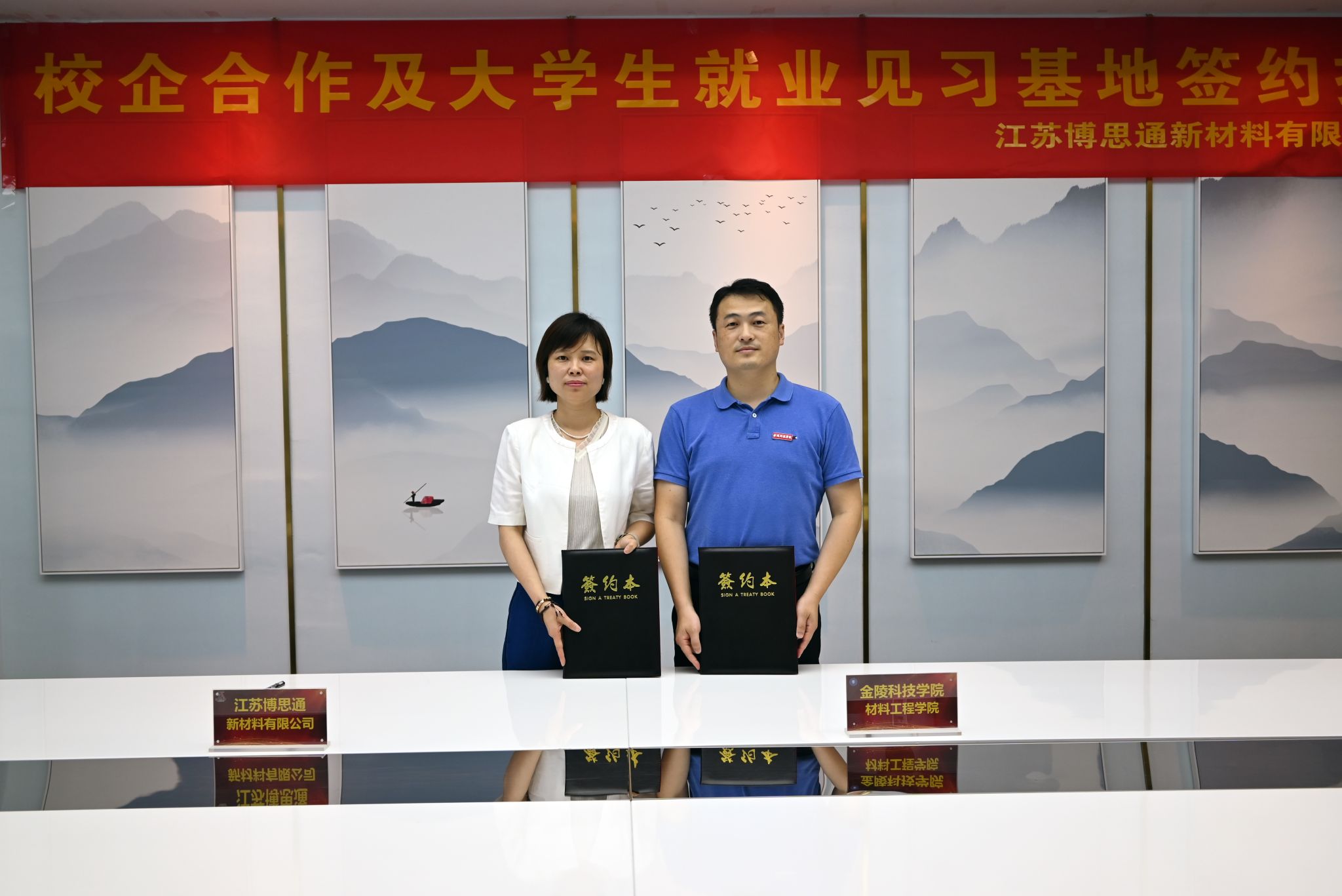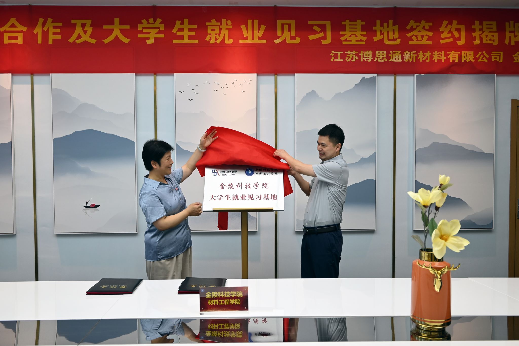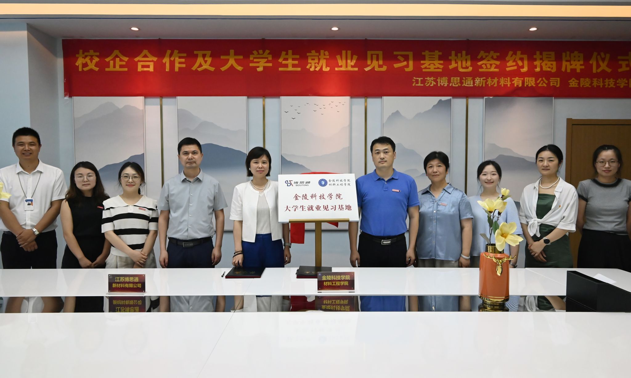 会后,双方就校企合作、实习就业等方面进行了深入交流,并签订了就业见习基地协议并进行揭牌仪式。