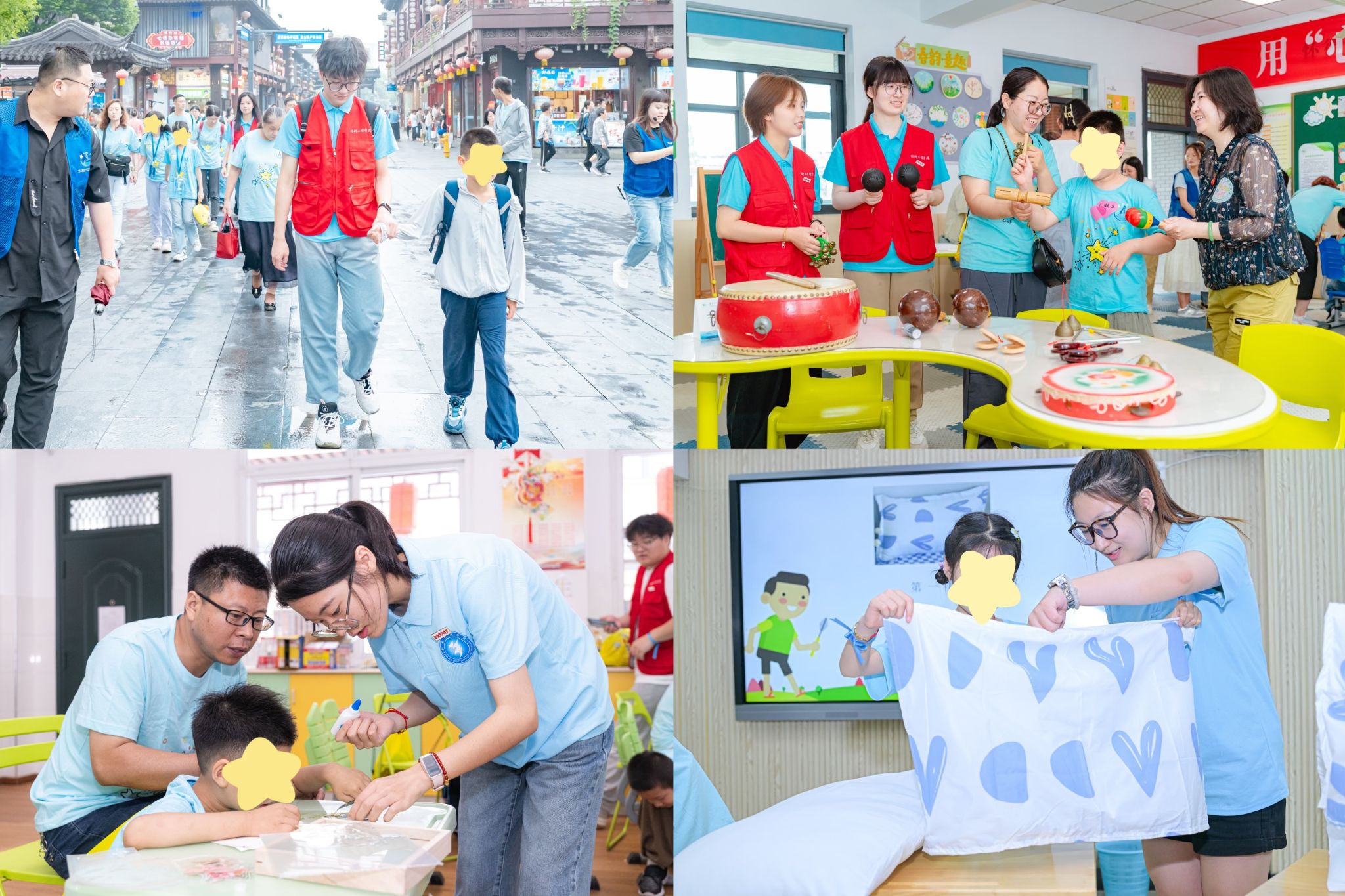 仪式结束后,志愿者们分为两组深入班级,与班主任一起带领小营员们开展丰富多样的活动。本次夏令营按照孤独症孩子年龄特点分为“小星星成长营”和“星耀少年成长营”。在“小星星成长营”中,志愿者陪同即将成为小学生的小星星们探寻花草书签之美、体验户外团康小游戏、感受亲子地板疗愈时光等。在“星耀少年成长营”中,志愿者纷纷融入到小朋友们中间,耐心细致地引导他们制作清凉水果茶、研学游览中国科举博物馆、体验非遗漂漆扇等,让孩子们感受到了来自大哥哥、大姐姐的关爱和温暖。