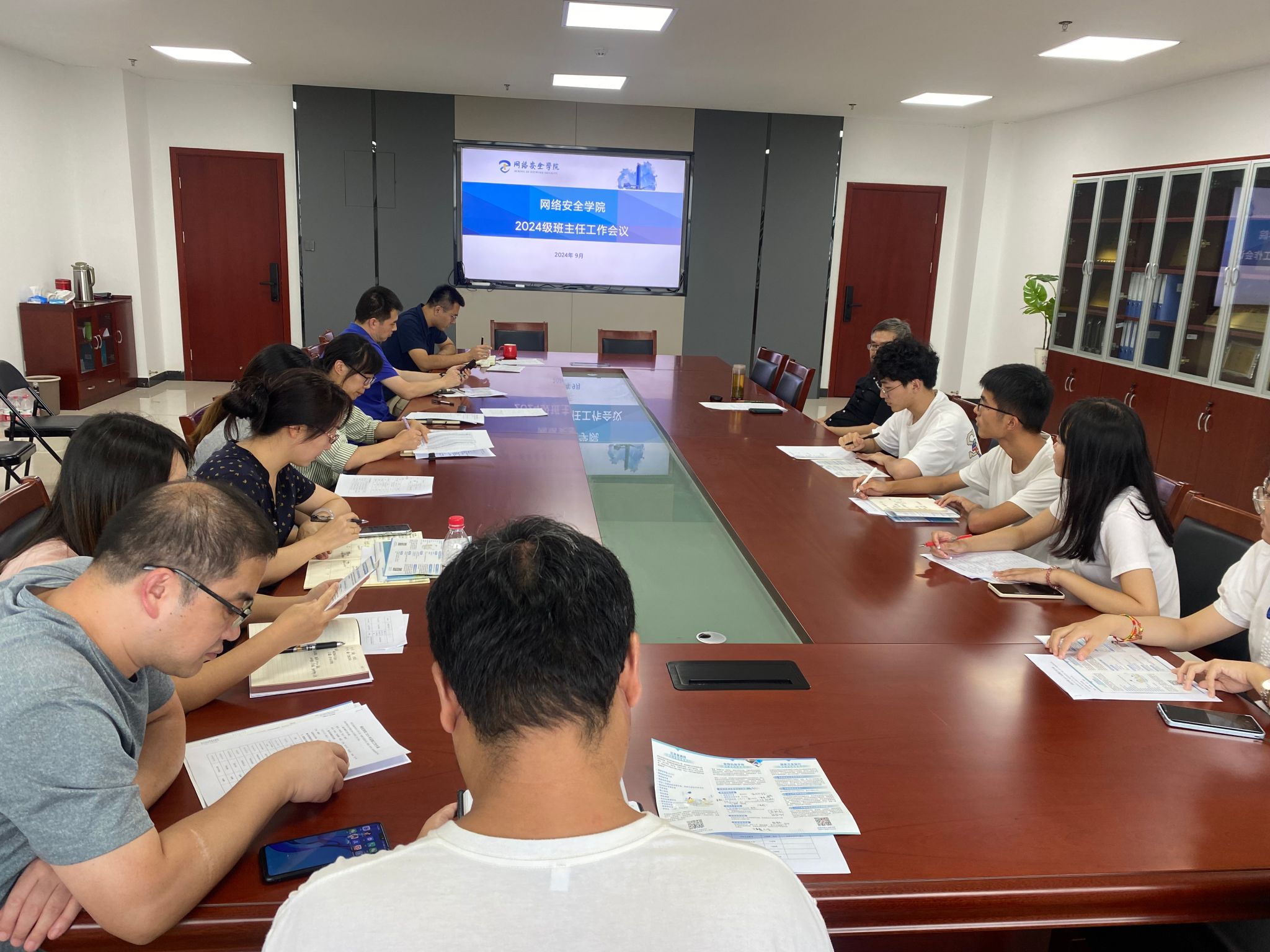 为深入细致地做好2024级迎新工作,确保新生报到工作平稳有序开展,9月11日下午,网安学院在科技楼4-1218会议室召开2024级新生班主任工作布置会,院党总支书记叶海青主持会议,全体辅导员、新生班主任及新生班助参加会议。
