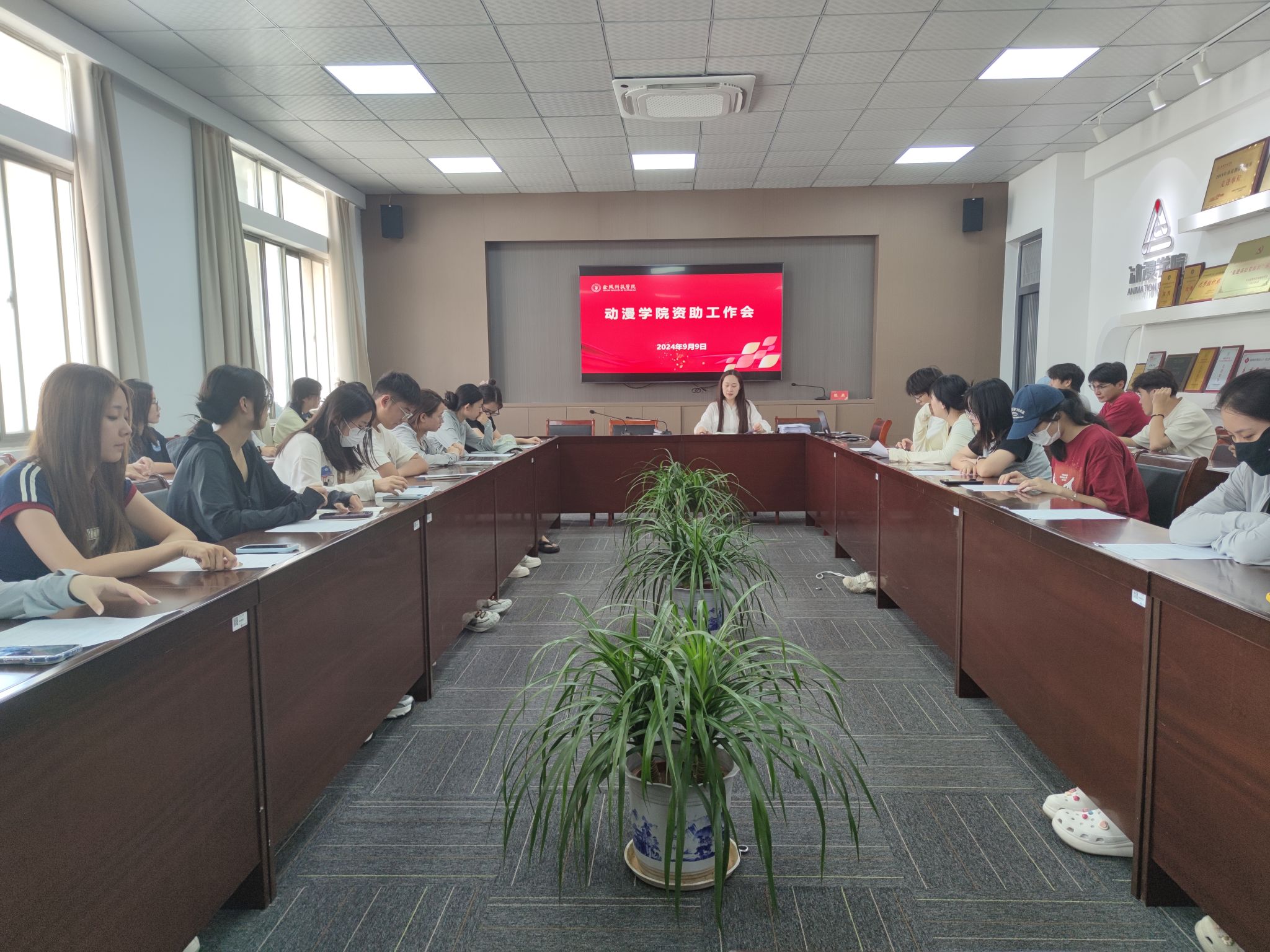9月10日,动漫学院在7406会议室,召开了2024年下半年学生资助工作会。学院辅导员王月恒老师,全体班长、生活委员,新生班助以及家庭经济困难学生代表参加了会议。