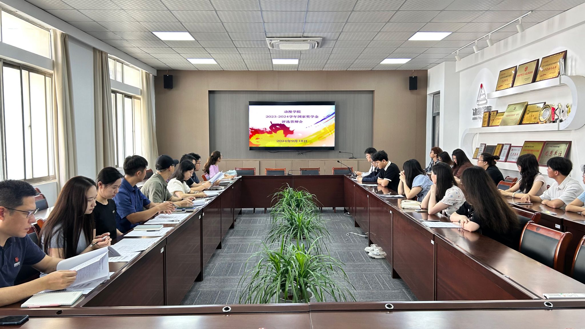 9月18日,动漫学院在7406会议室召开了2023-2024学年国家奖学金评选答辩会。学院党总支书记赵宁、院长王贤波、副院长王柯,各系部主任及全体辅导员担任答辩评委,学校学生工作处学生资助管理中心杨晰老师莅临现场指导,各专业学生代表参加本次评选答辩会观摩学习。
