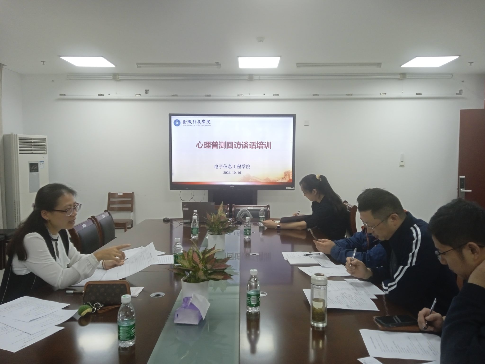 10月16日下午,电子信息工程学院在科技楼4号楼410楼会议室召开了24级新生心理普测回访谈话专题培训,由党委副书记陈智慧主讲,24级全体班主任、辅导员参加。